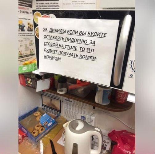 — Уважаемые дибилы! Если вы будите оставлять пидорню за собой на столе, то зарплату будете получать комбикормом. (с)Сергей Петрович Студенников.