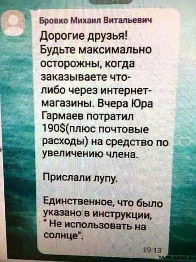 Рис. 1. «Заказал средство для увеличения члена… а прислали – лупу».