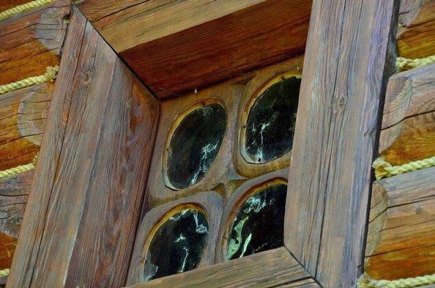 И окошко, затянутое полупрозрачным материалом - рыбьим или бычьим пузырем выглядело ориентировочно так (соединительная ткань, ага). Впрочем есть у меня есть основания полагать, что и слюда и стекло тоже скорее округлые имело формы, а не привычные нам прямоугольники.