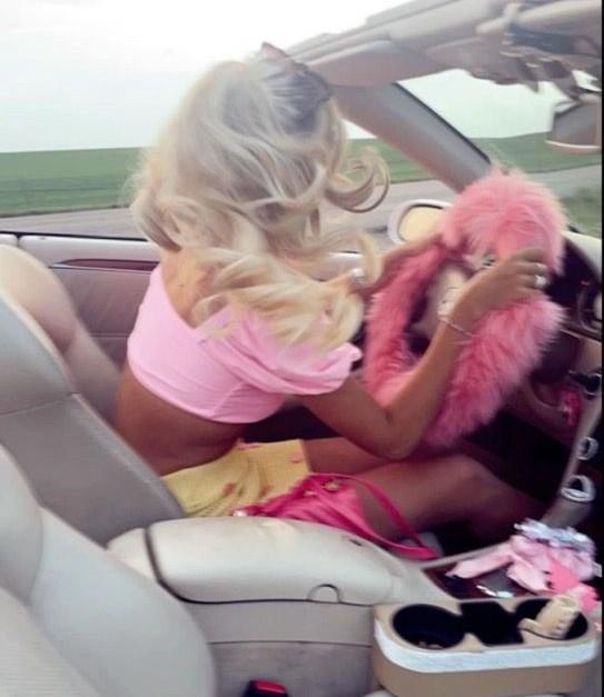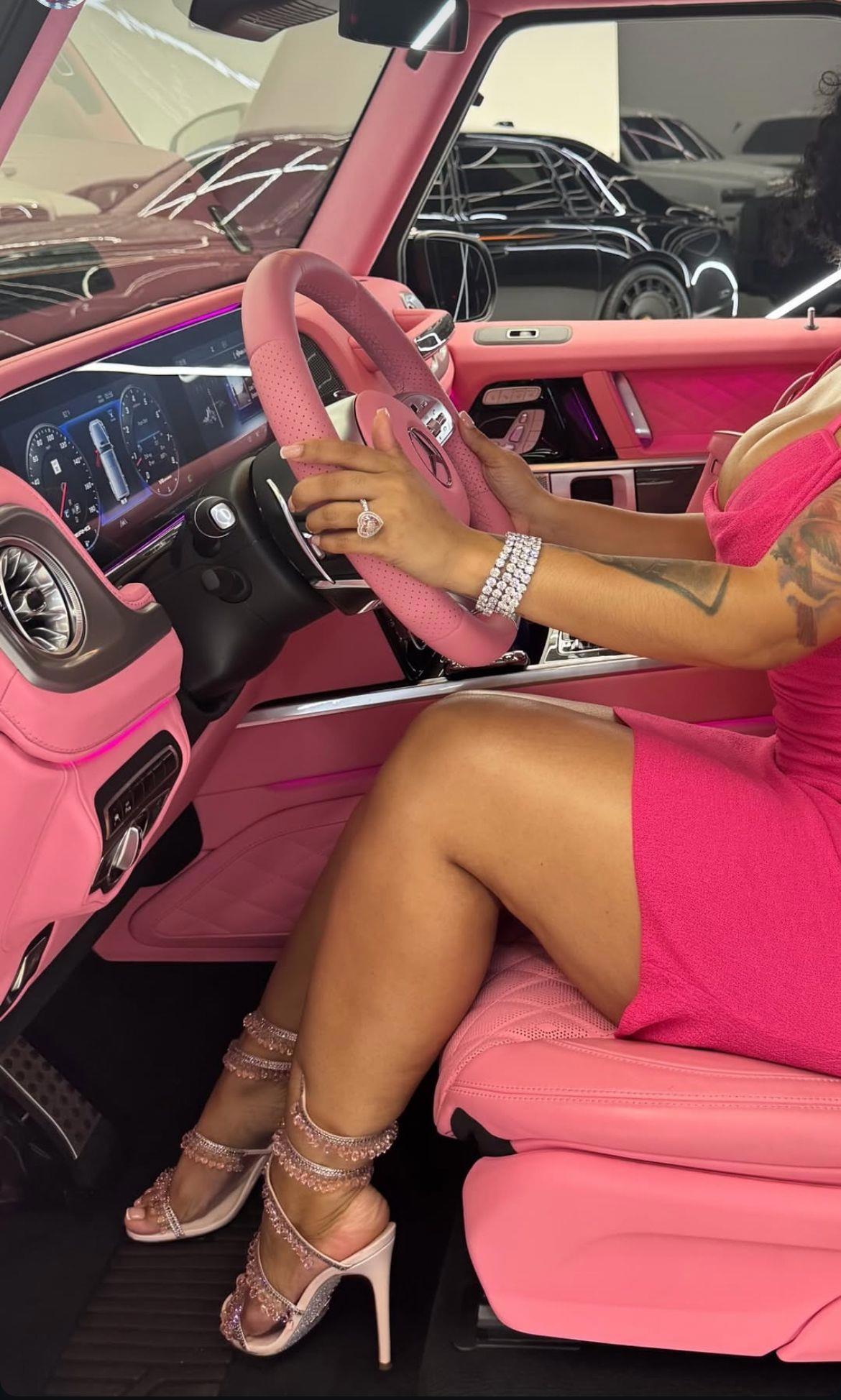 да ещё за розовым рулём?