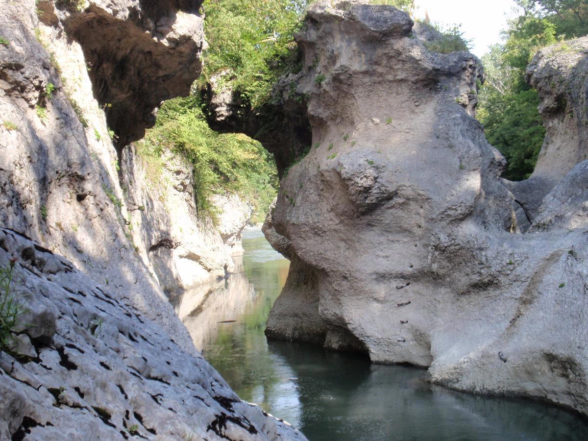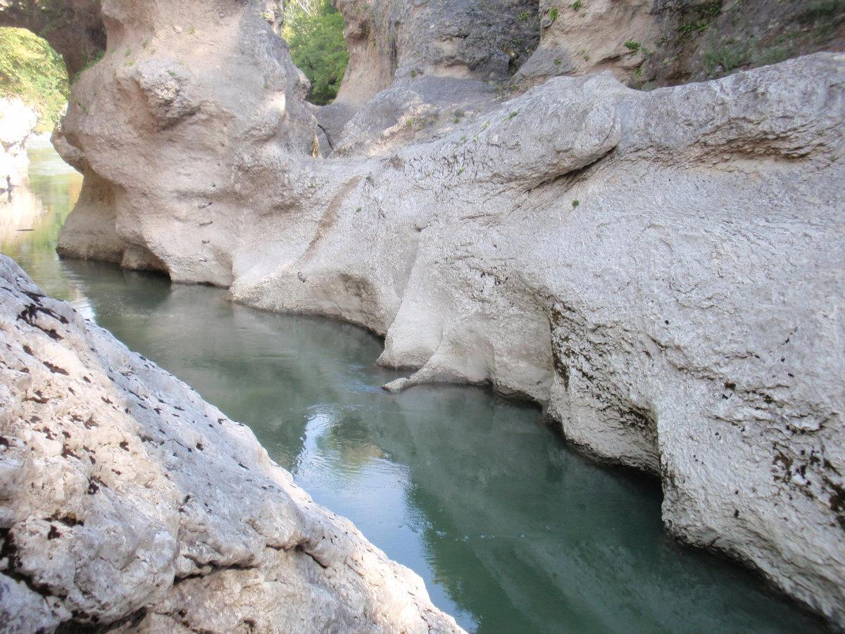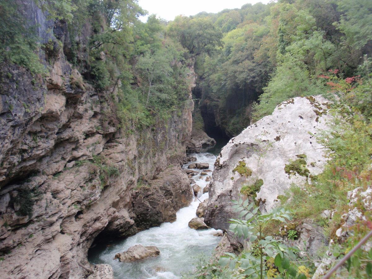 В один из солнечных дней мы выбрались в Хаджохскую теснину (Каменномостский каньон). Это место потрясающей красоты – участок ущелья реки Белой, в которой оборудован экскурсионный маршрут со смотровыми площадками, скамейками и перилами. Теснина длиной почти 400 метров, а ширина каньона в узких участках от 2 до 6 метров. Глубина каньона – около 40 метров.Теснина в течение десятков тысячелетий вымывалась рекой, пока не приобрела современный вид. С 1979 года каньон является памятником природы республиканского значения.