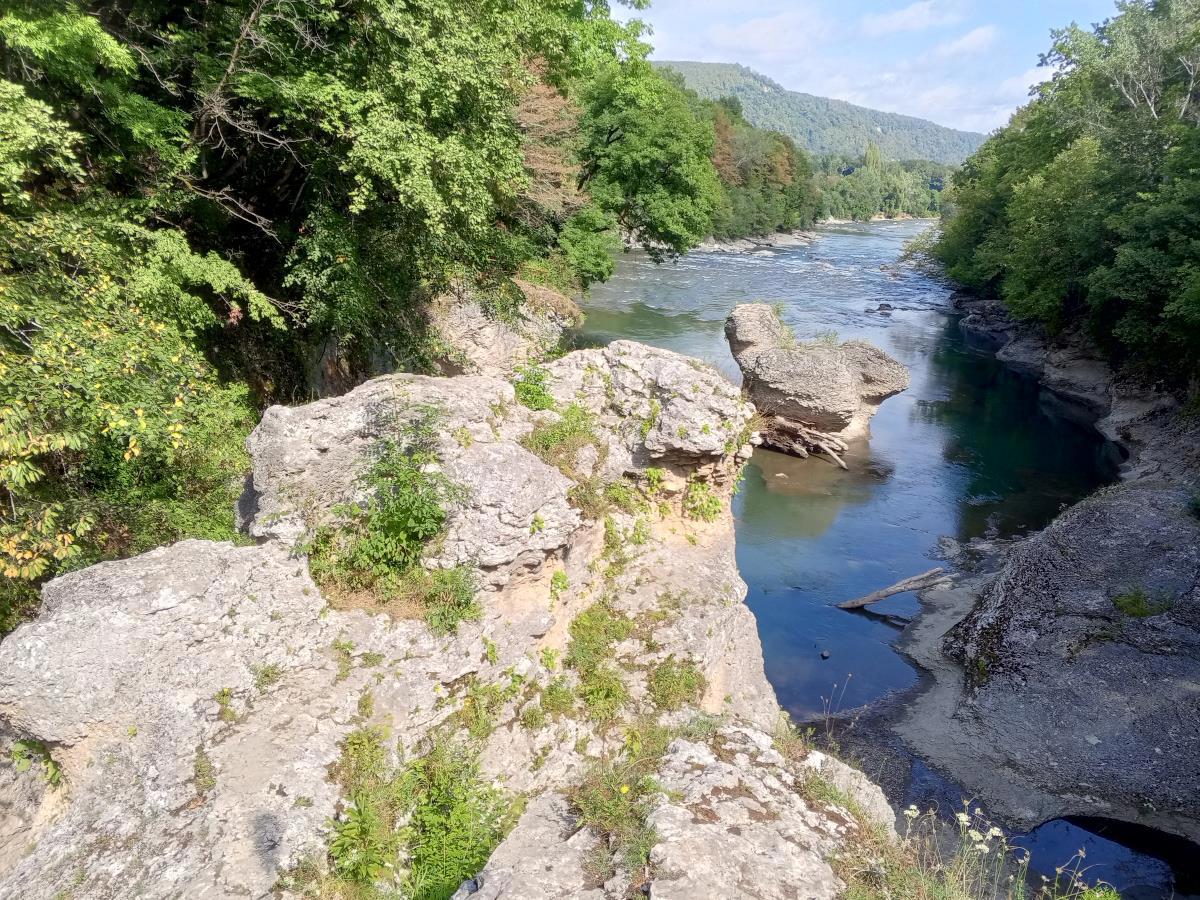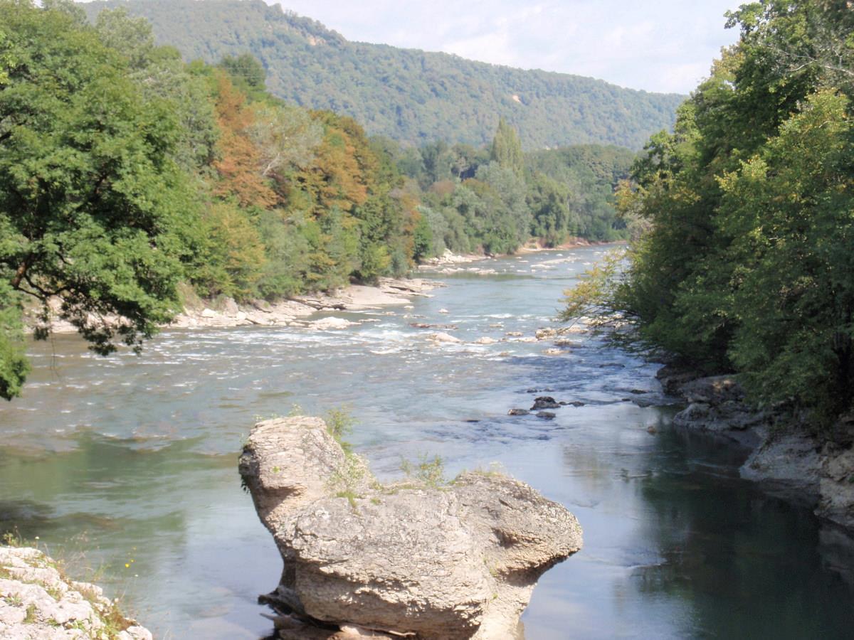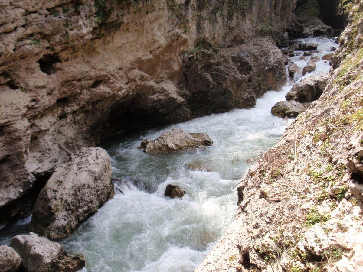 В один из солнечных дней мы выбрались в Хаджохскую теснину (Каменномостский каньон). Это место потрясающей красоты – участок ущелья реки Белой, в которой оборудован экскурсионный маршрут со смотровыми площадками, скамейками и перилами. Теснина длиной почти 400 метров, а ширина каньона в узких участках от 2 до 6 метров. Глубина каньона – около 40 метров.Теснина в течение десятков тысячелетий вымывалась рекой, пока не приобрела современный вид. С 1979 года каньон является памятником природы республиканского значения.