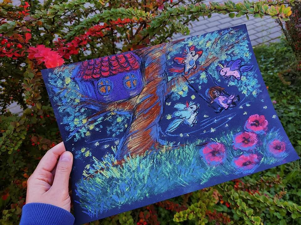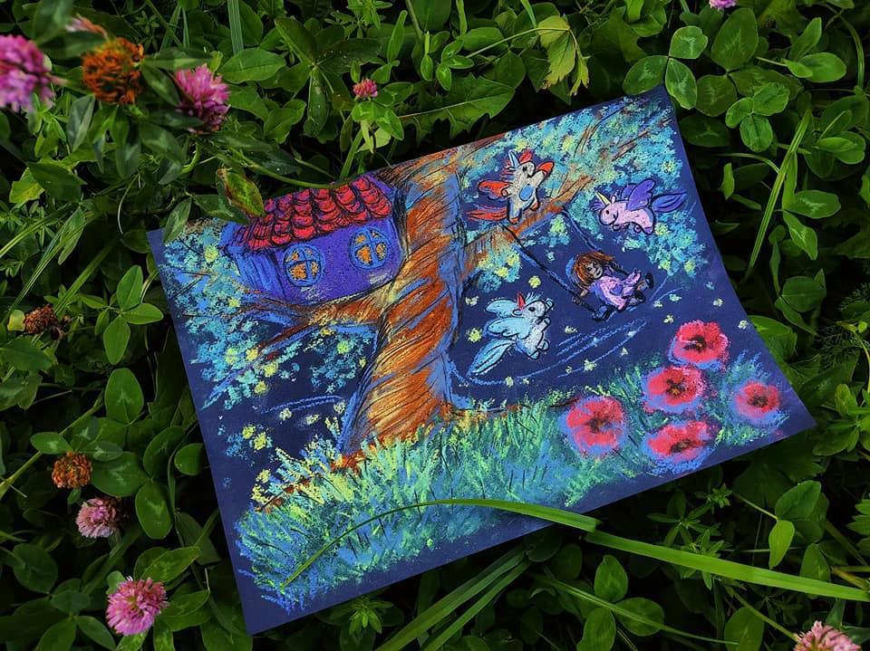 Где-то на белом свете существует рисовательный психологический тест про дом, дерево, человека и несуществующих существ. В 2021 году у меня он выглядел как-то так. Я решила, а чего? Ничтоже сумняшеся! Возьмём пастель!