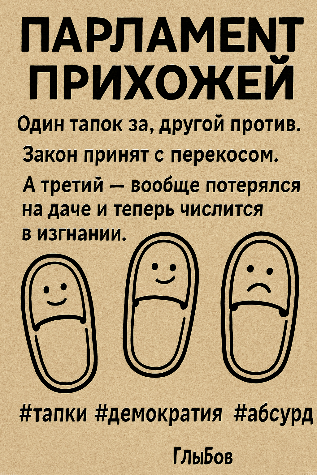 Автор: Аркадий ГлыбовОдин тапок за, другой против.