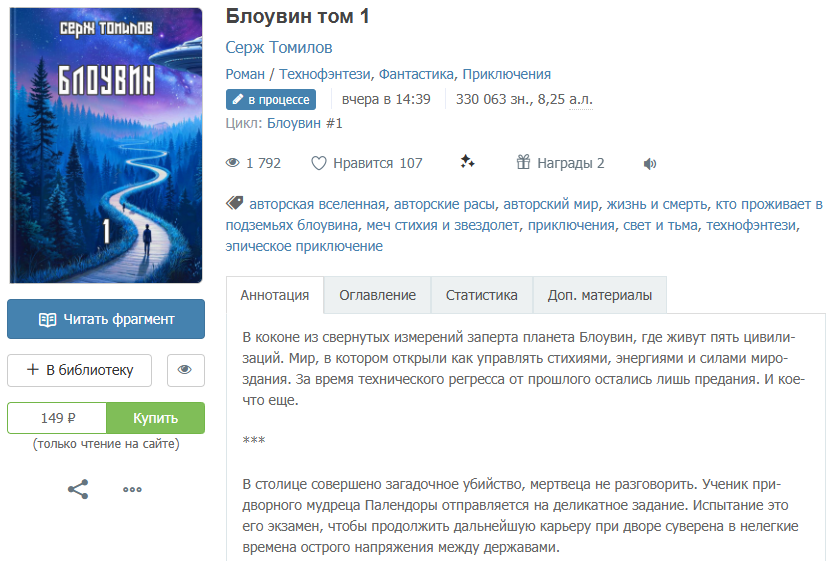 Автор: Александра ВыдраСегодня в 18:00 по Москве "Читаем Вместе" новинку Сержа Томилова: технофэнтези "Блоувин"