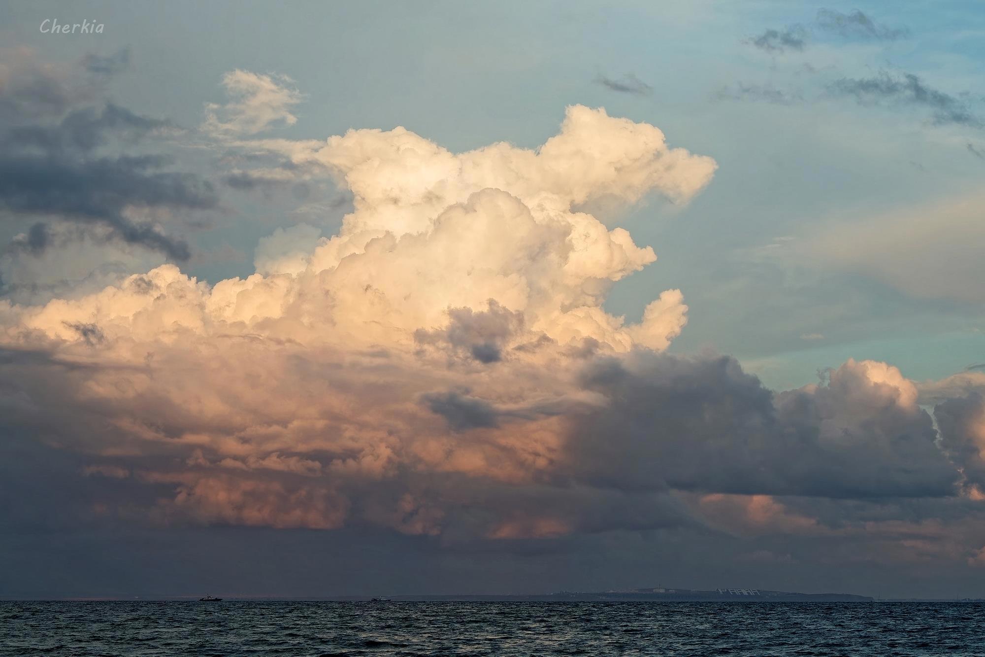 Я снимала, поворачиваясь, и везде были облачные горы, облачные массивы, башни, холмы и долины, и в них постоянно менялся цвет и освещение. И всё это было - огромное. Объектива зеркалки не хватало, чтоб уместить в кадр то, что видели глаза.