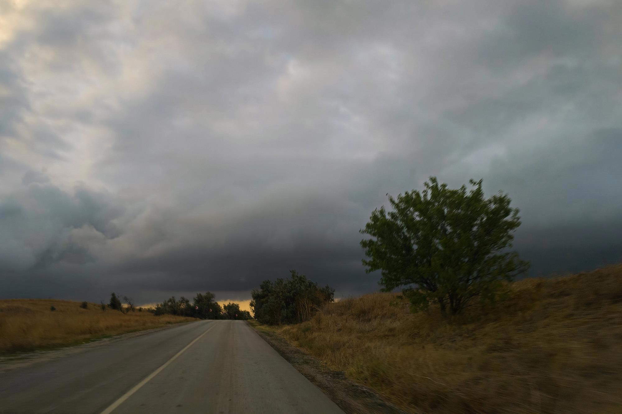 Дорога к городу сворачивала именно туда, где громоздился дождевой фронт. И мы таки попали под ливень, совершенно кромешный, вокруг была темнота, виднелись лишь габаритные огни машины перед нами, да несколько метров сплошной водяной стены. Ехать пришлось медленно, только дворники работали в усиленном режиме, но почти не справлялись. Никаких фоточек сделать было нельзя, но зато я сняла парочку видео, причем смартфон очень старался высветлить картинку, пришлось подправить настройки, чтобы и в ролике была видна эта чернота, проколотая красными огоньками.