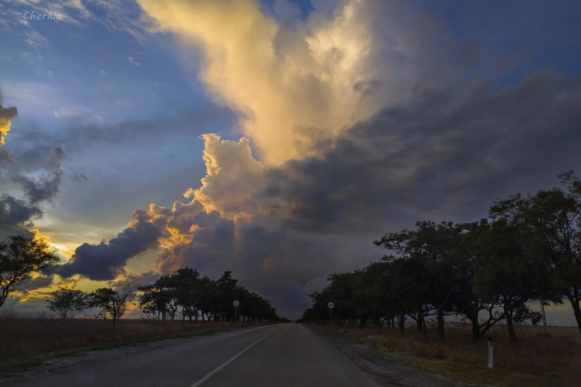 Насмотревшись на облачный театр, мы отправились обратно, поглядывая на дальние дожди, которые тащили под собой тучи сразу в нескольких местах.