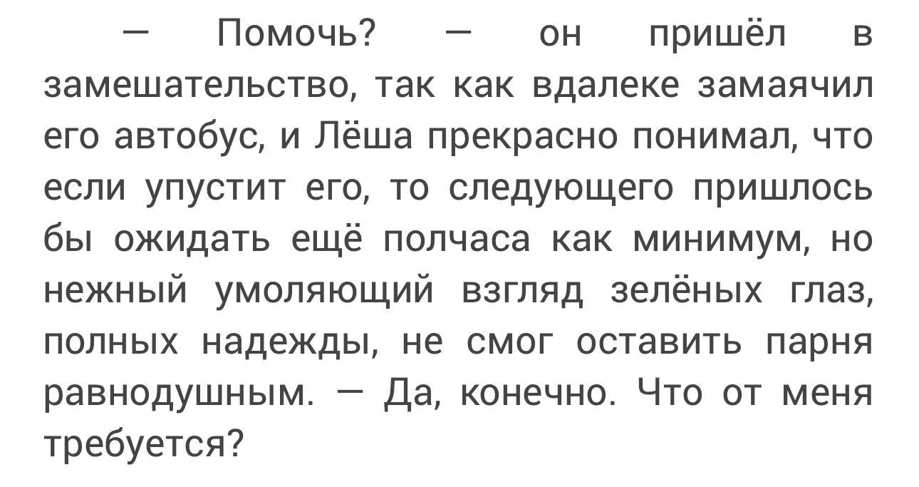 Далее он пишет, что она ходила в одном и том же три дня. Они, наверно, в Гренландию ехали, потому что сейчас куча магазинов, и продавцы найдут, как с вас взять деньги. Сразу выписывается образ взбалмошной девушки. Но далее описывается, как Алексей познакомился с любимой Жанной. Та, между прочим, при первой встрече бездомному помогла, и мечтой её было готовить в детской столовой. Так получается, она с ним не из-за денег. Так что, она там его по лицу, что ли, била на отдыхе? По-моему, несостыковка. Не верю!