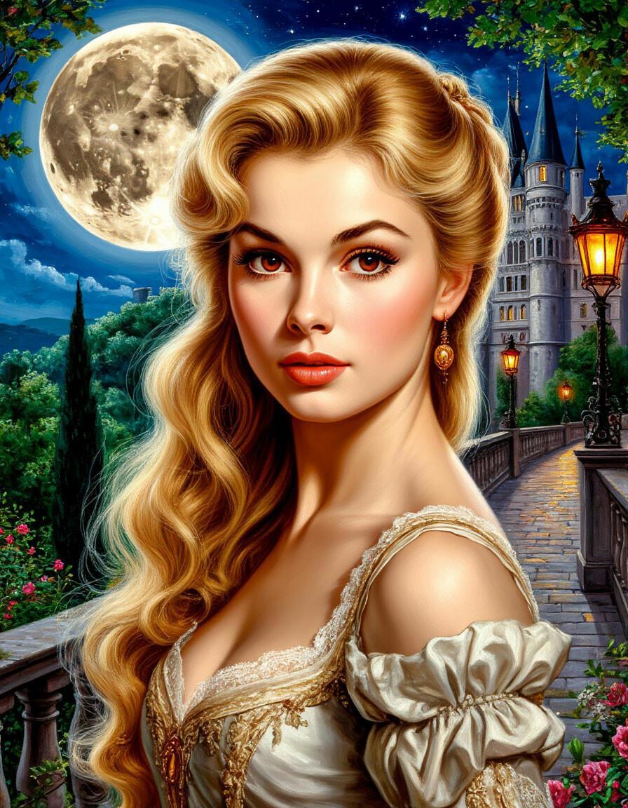 Автор: Маркиза ангеловИ принц вдруг оказался в каком-то неведомом теплом южном городе. Мимо замка под мостом тихо текла река, и в ее стеклянных водах отражались светящиеся окна замка, в синем небе красиво и ярко светила полная луна, теплый воздух был тих, неподвижен и наполнен пряными ароматами, а перед ними среди роз простиралась каменная дорожка, ведущая меж двух фонарей куда-то вниз…