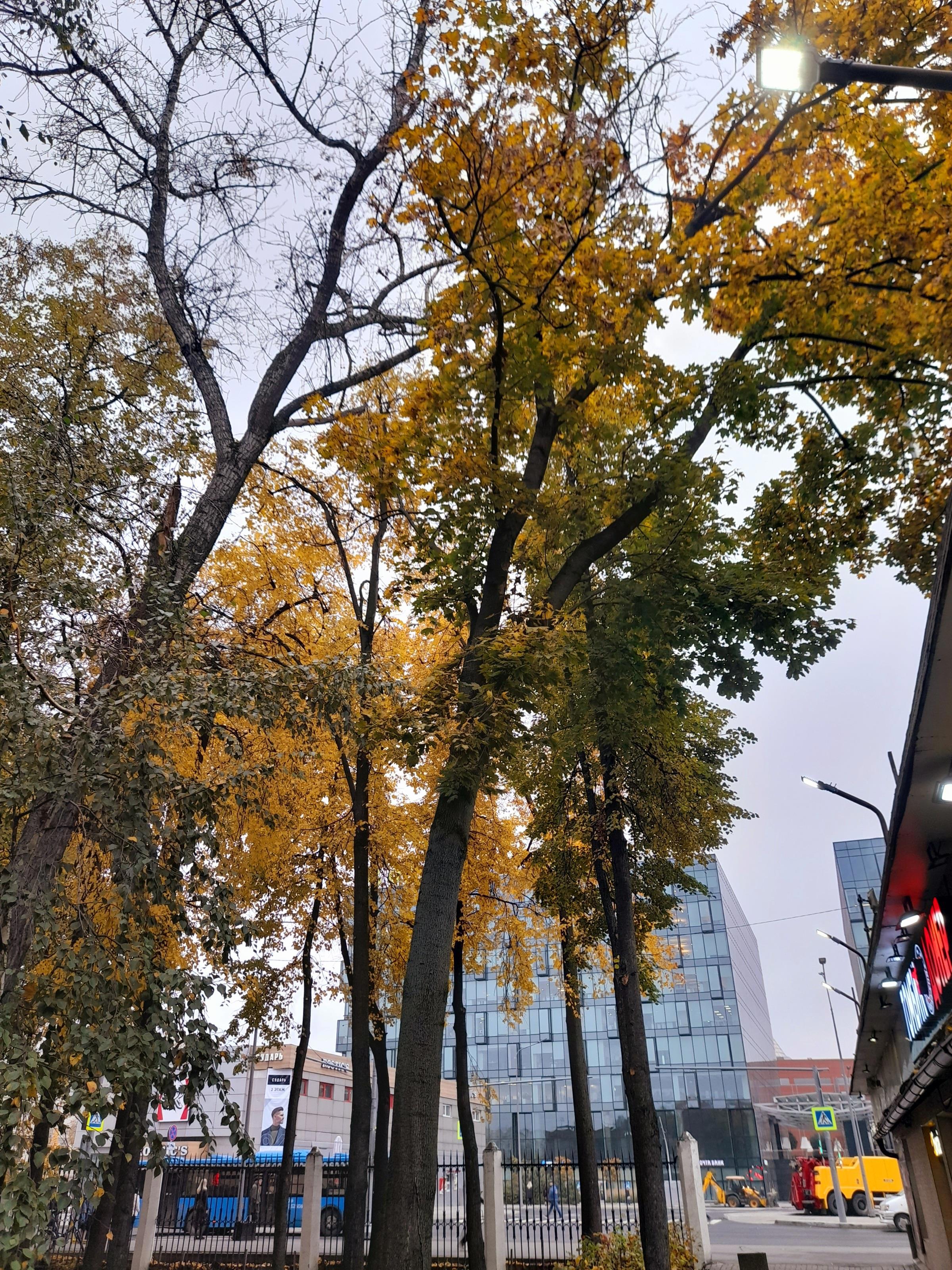 Тополя оголили верхние ветви. Два дня стоят туманы, особенно по вечерам.