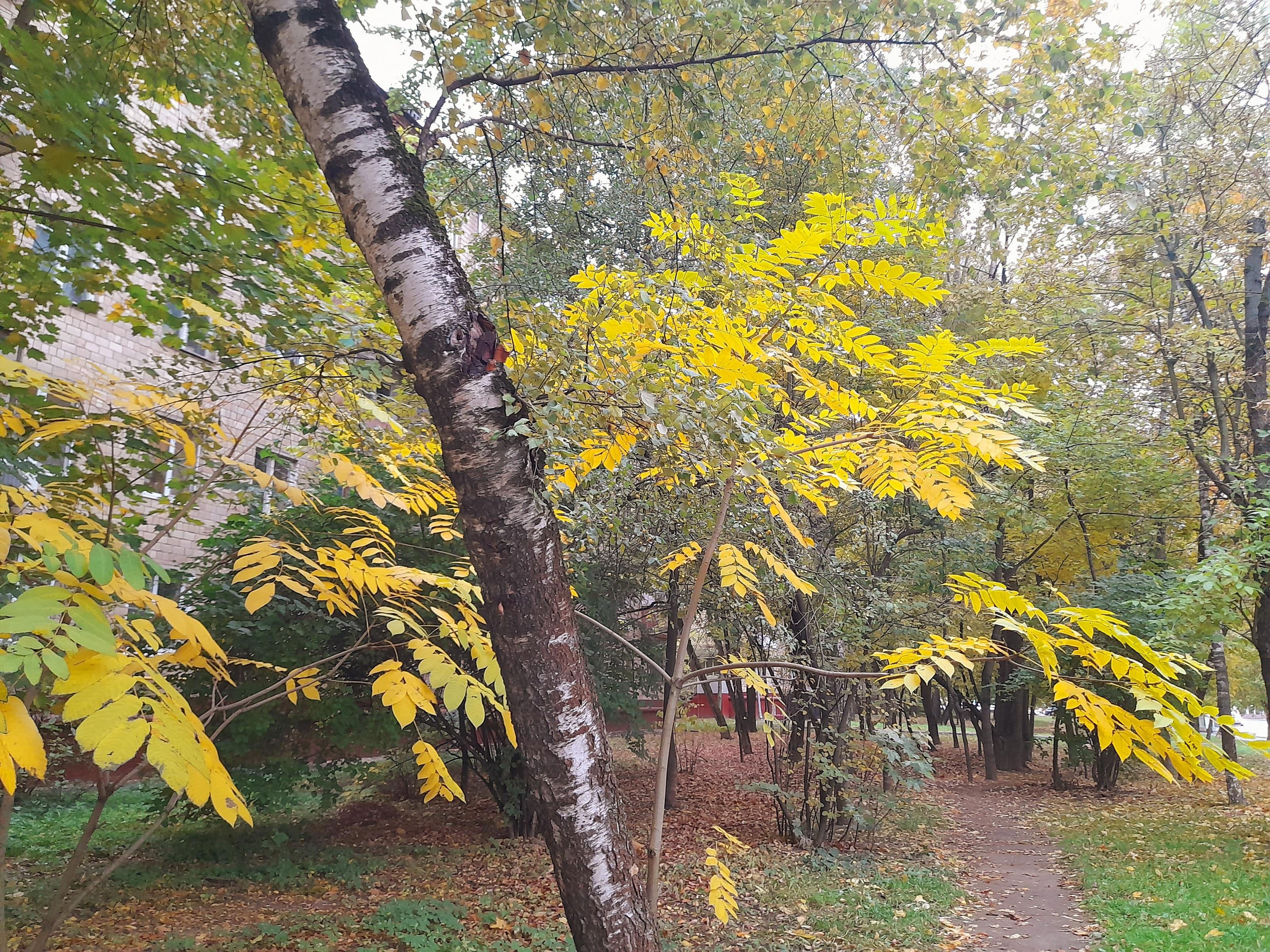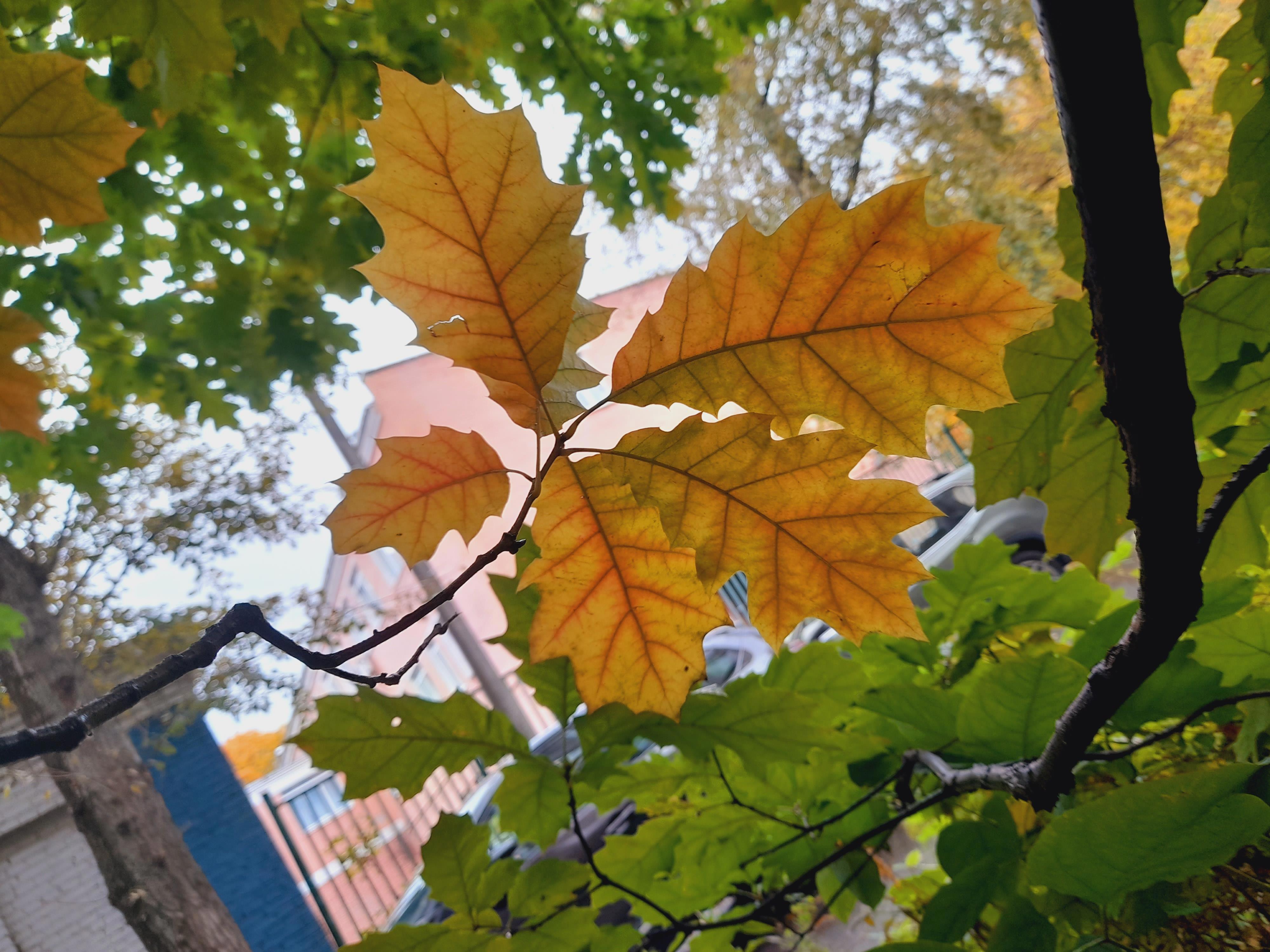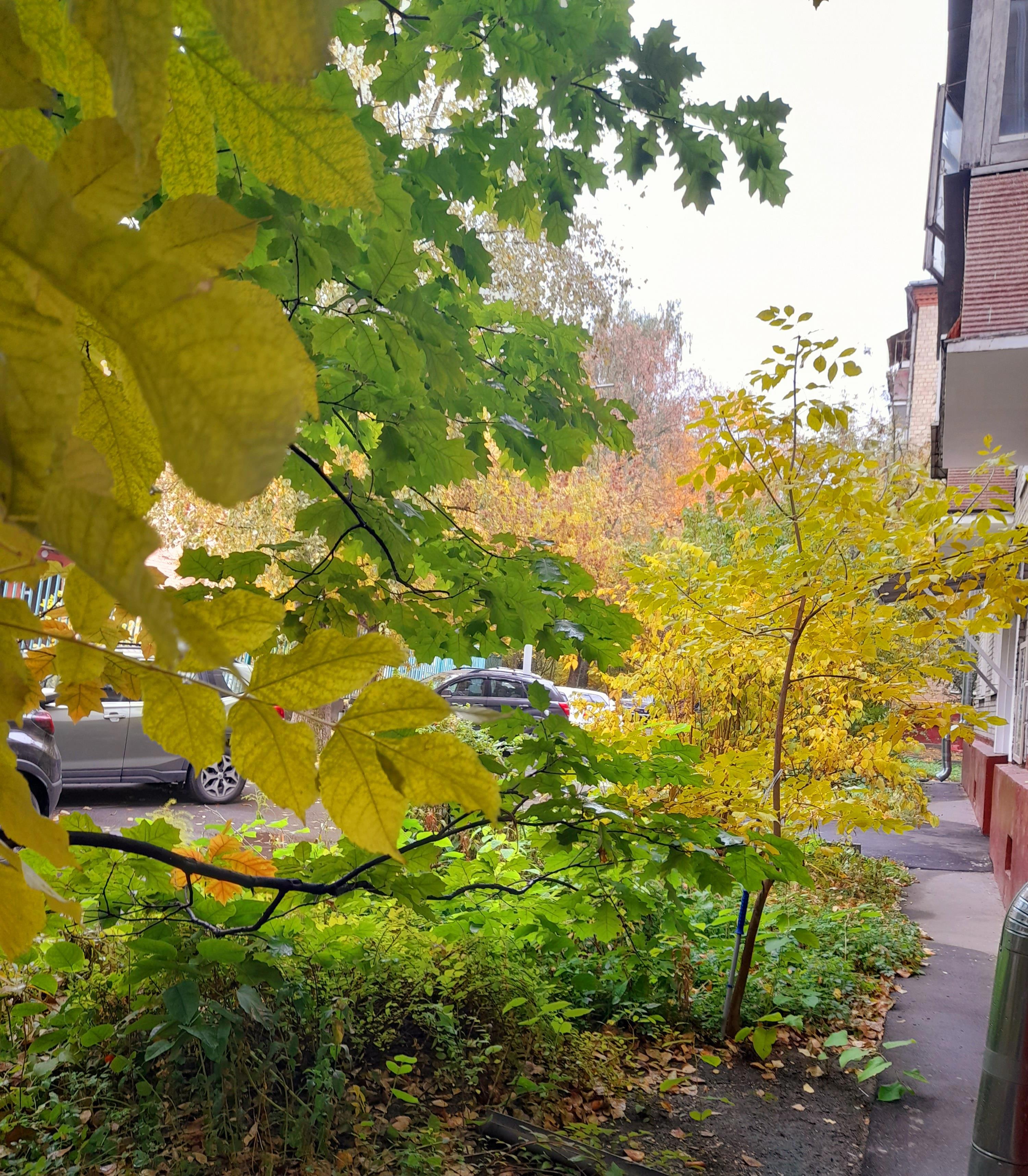 Это дубоклен у нашего подъезда. Уже начинает окрашиваться в осенние расцветки.