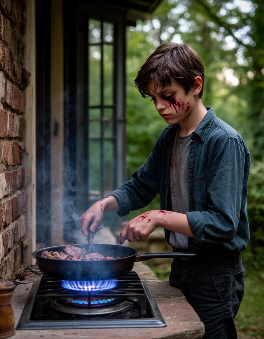 Филипп, чутка уменьшив газ под сковородкой с мясом,