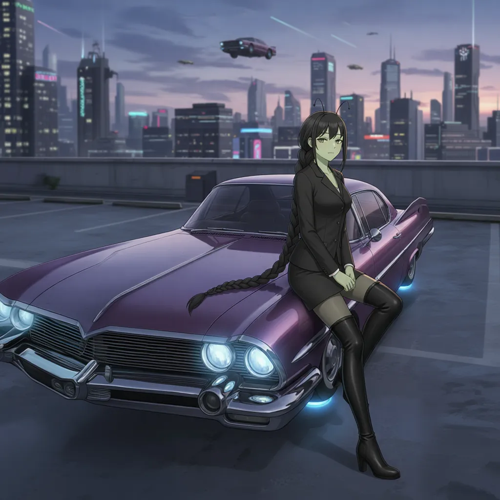 И напоследок - Ми со второй её машиной, на сей раз от "Крайслер-Канберра" (да, они не только двигатели к звездолётам делают).