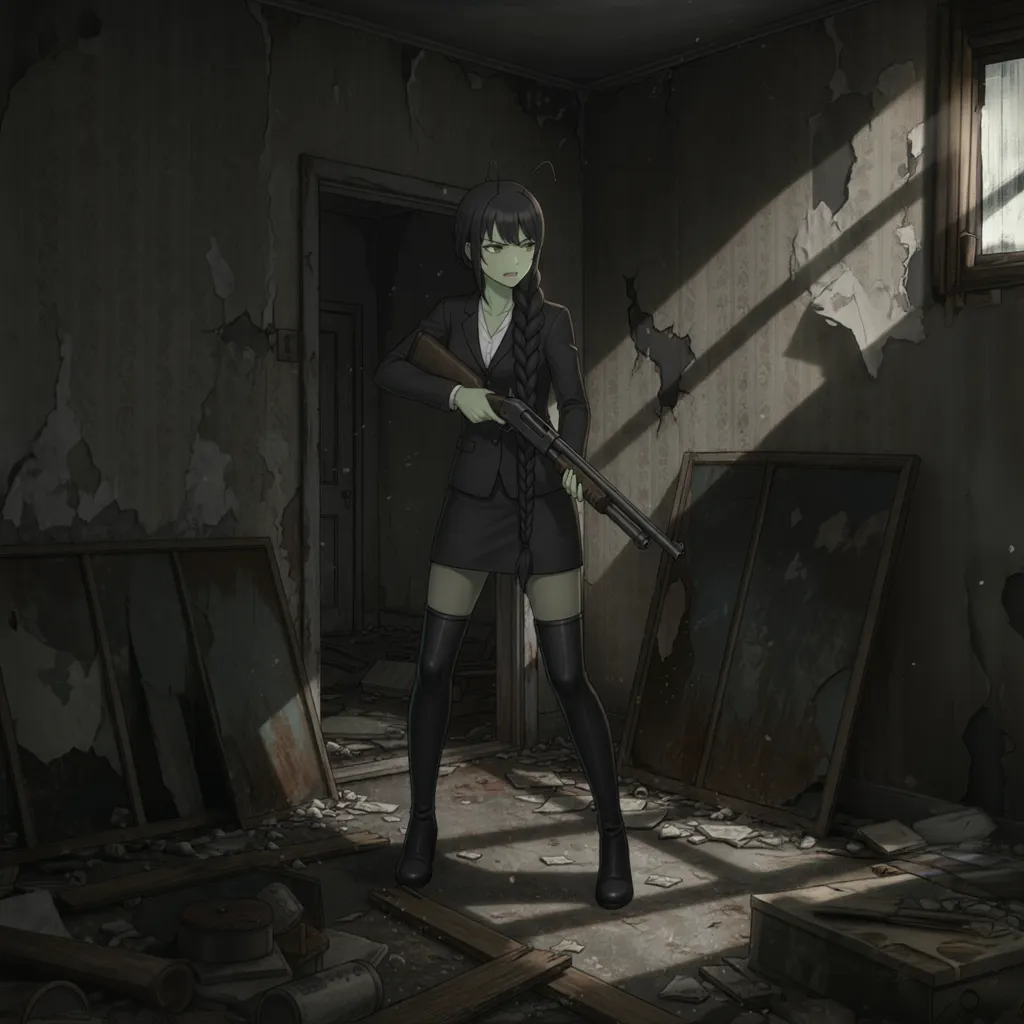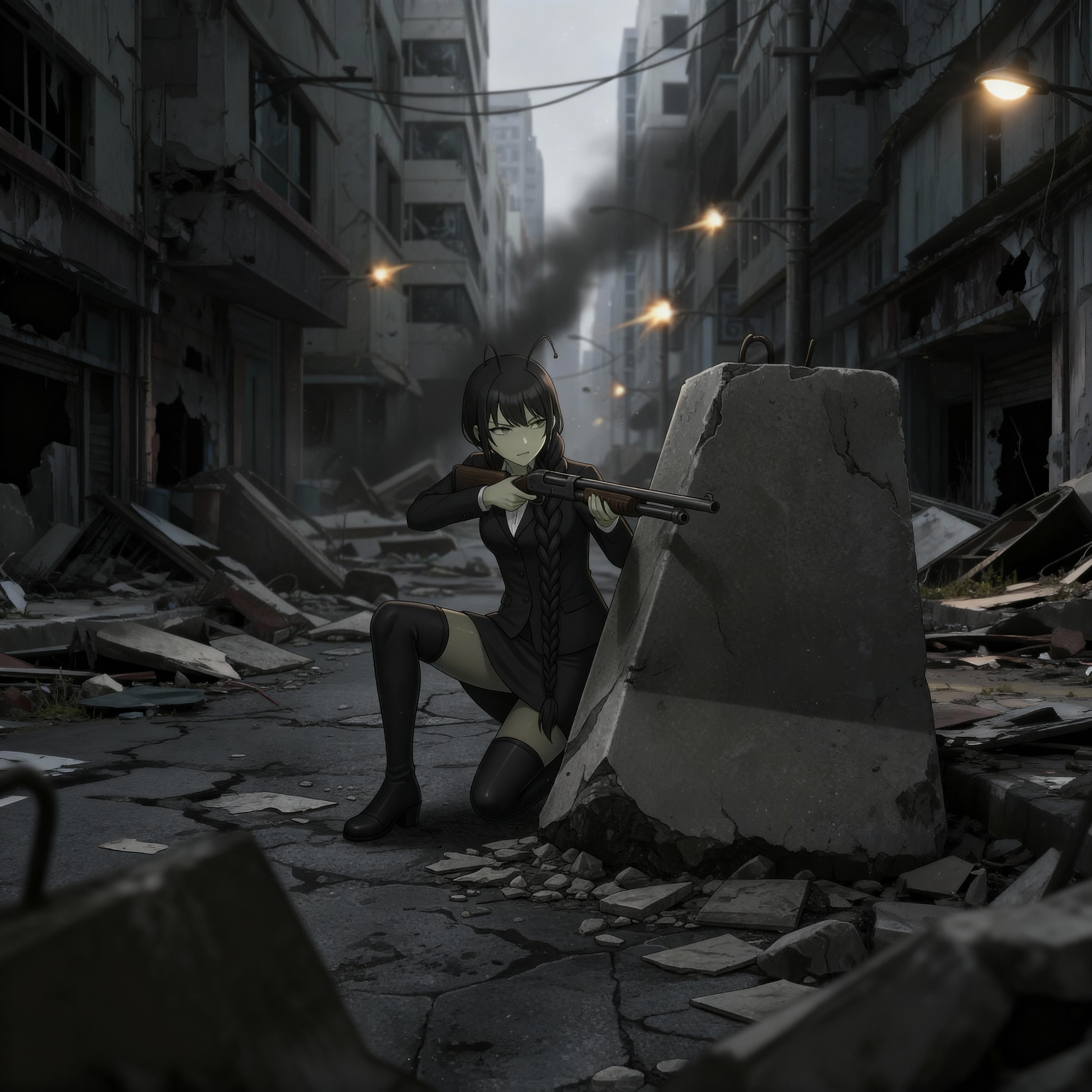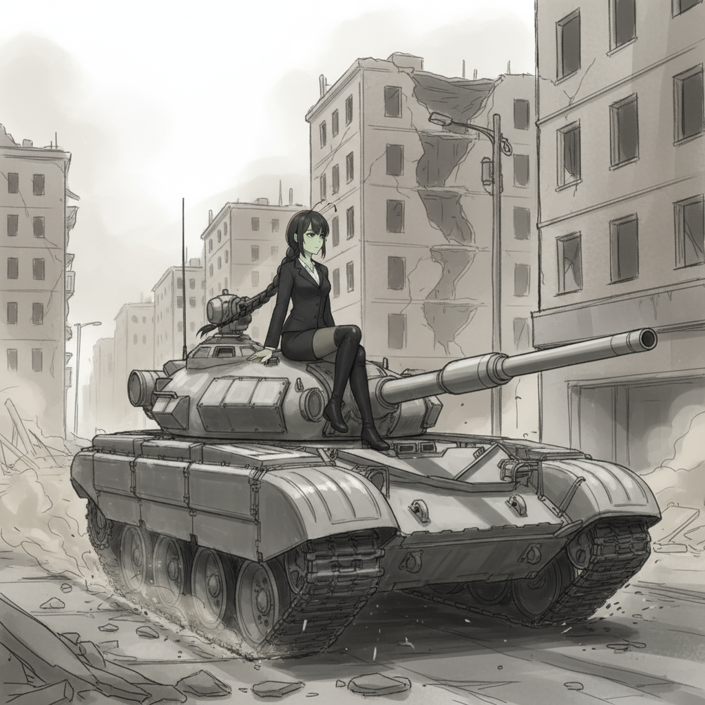 Во-вторых, вы уже заметили, что большинство рисунков выполнено в вертикальном формате - потому что исходным артом был портрет Ми, вырезанный с двойного рисунка. Я пробовал добиться обратного - расширить рисунки, не потеряв в качестве. Поначалу ничего не выходило, однако затем я использовал трюк, который мне посоветовал один из подписчиков. А именно - попросить сетку написать промт для самой себя, переведя мои пожелания в более машинные формулировки. И перебрав несколько вариантов, я всё-таки получил...