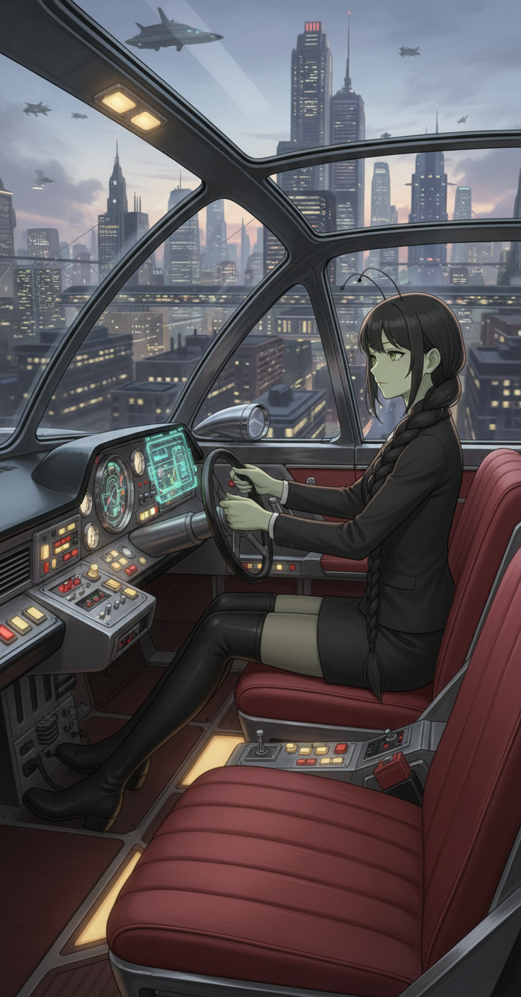 Ми за рулём своей винтажной летающей тачки от "General Motors". Ибо "Джи-Эм - ощути дух настоящей Старой Земли!".