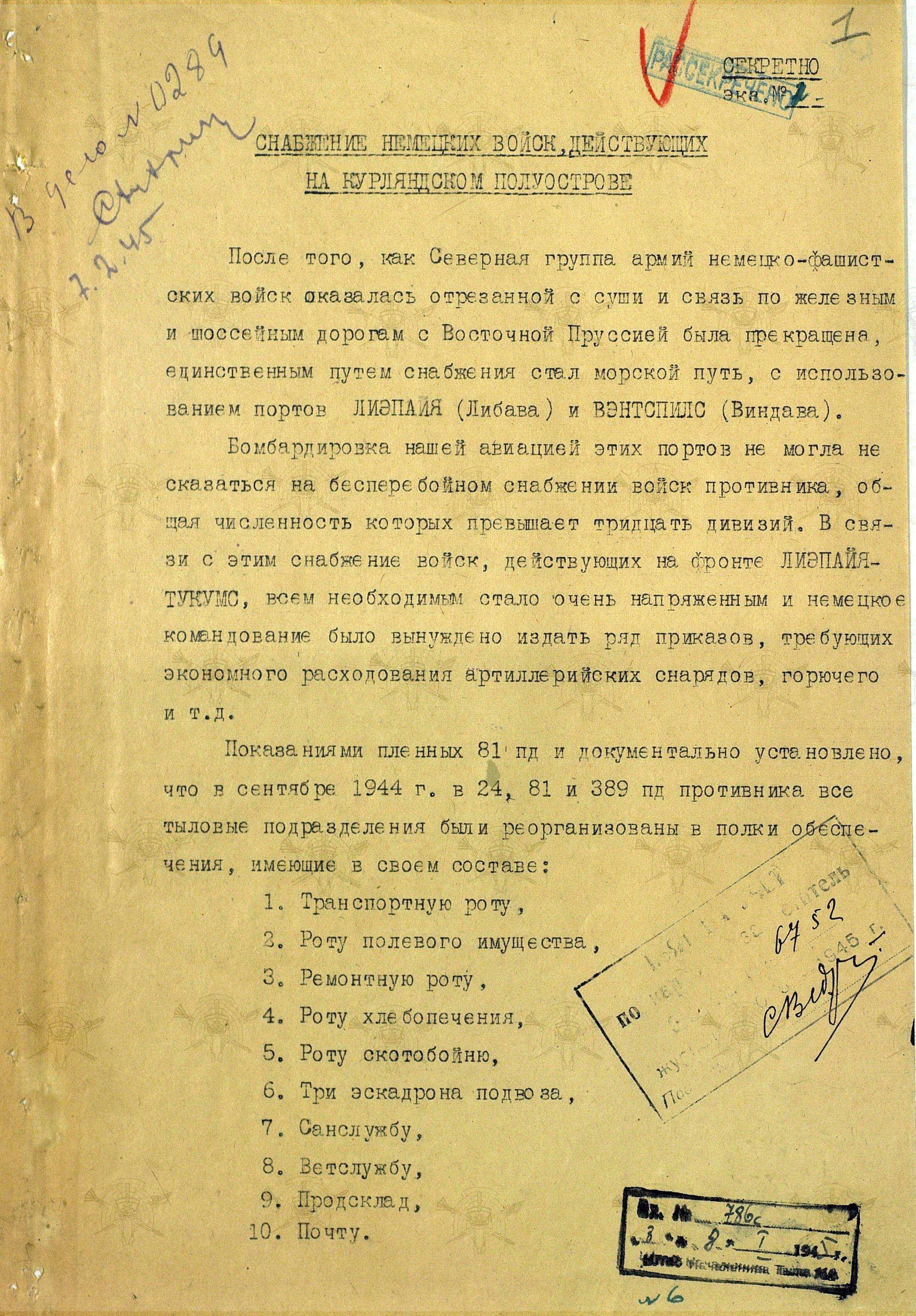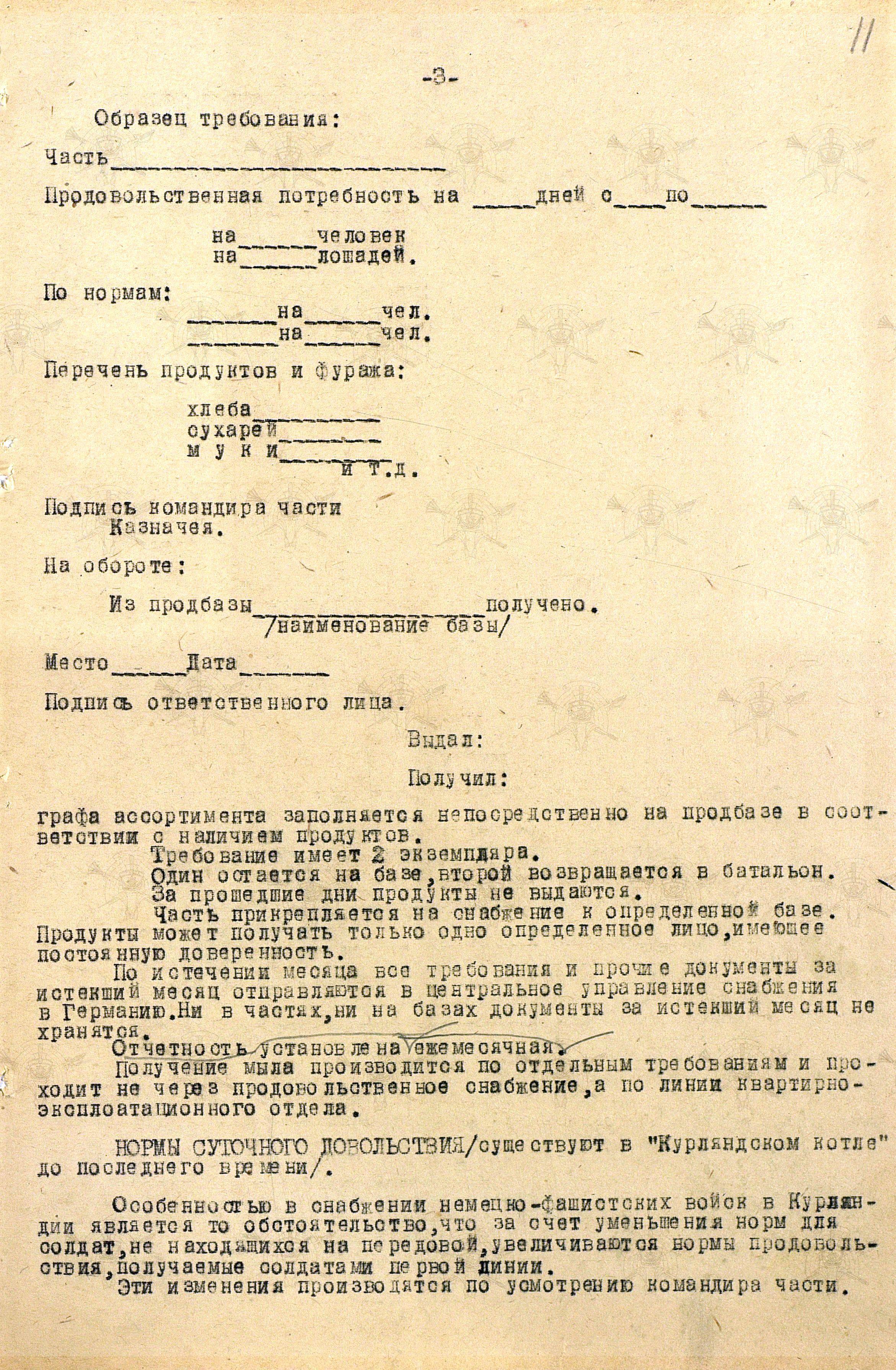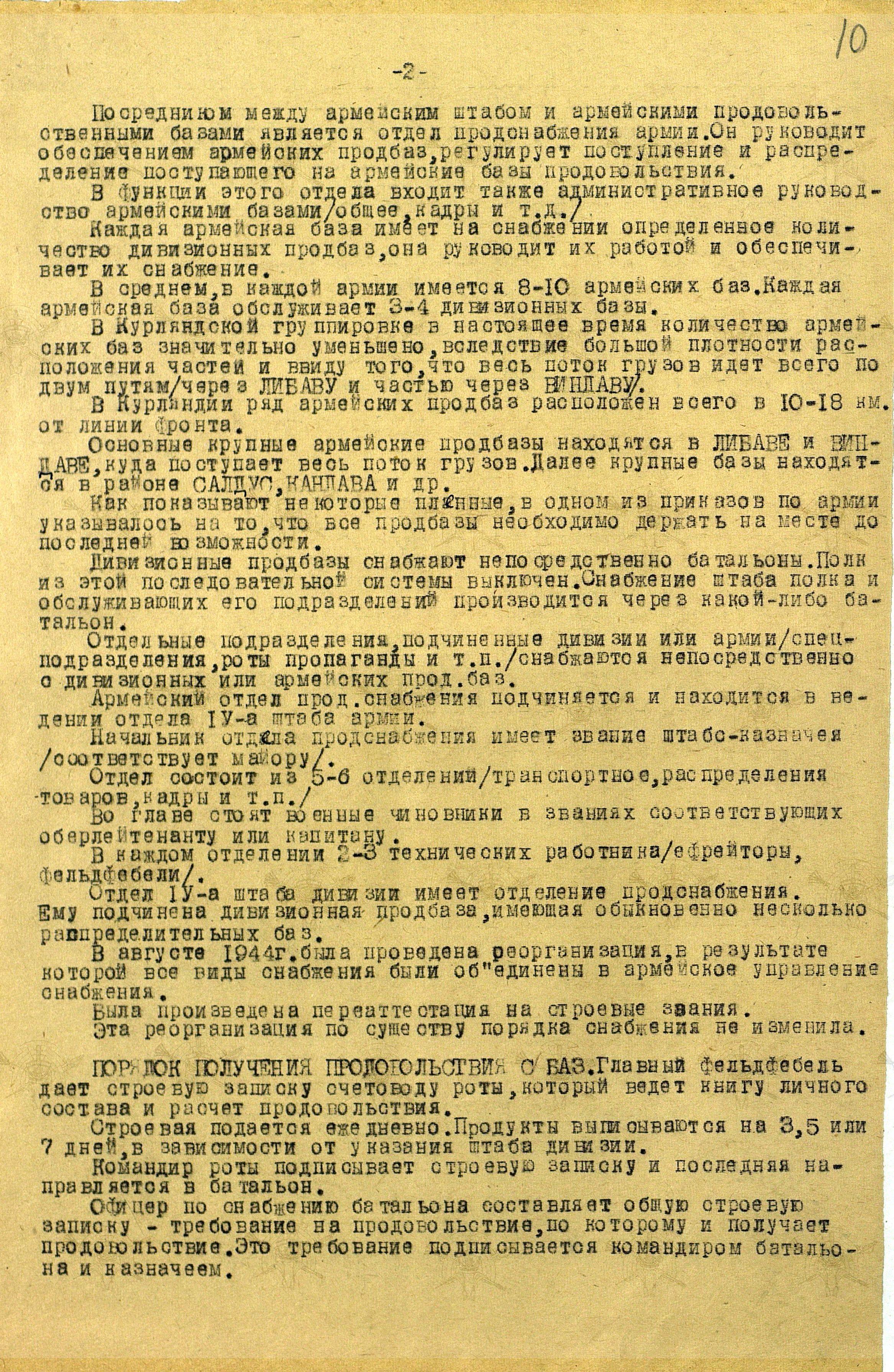 Сегодня вашему вниманию представляются два документа по организации тылового обеспечения германской армии, составленных на основании показаний немцев, попавших в плен в Курляндии.