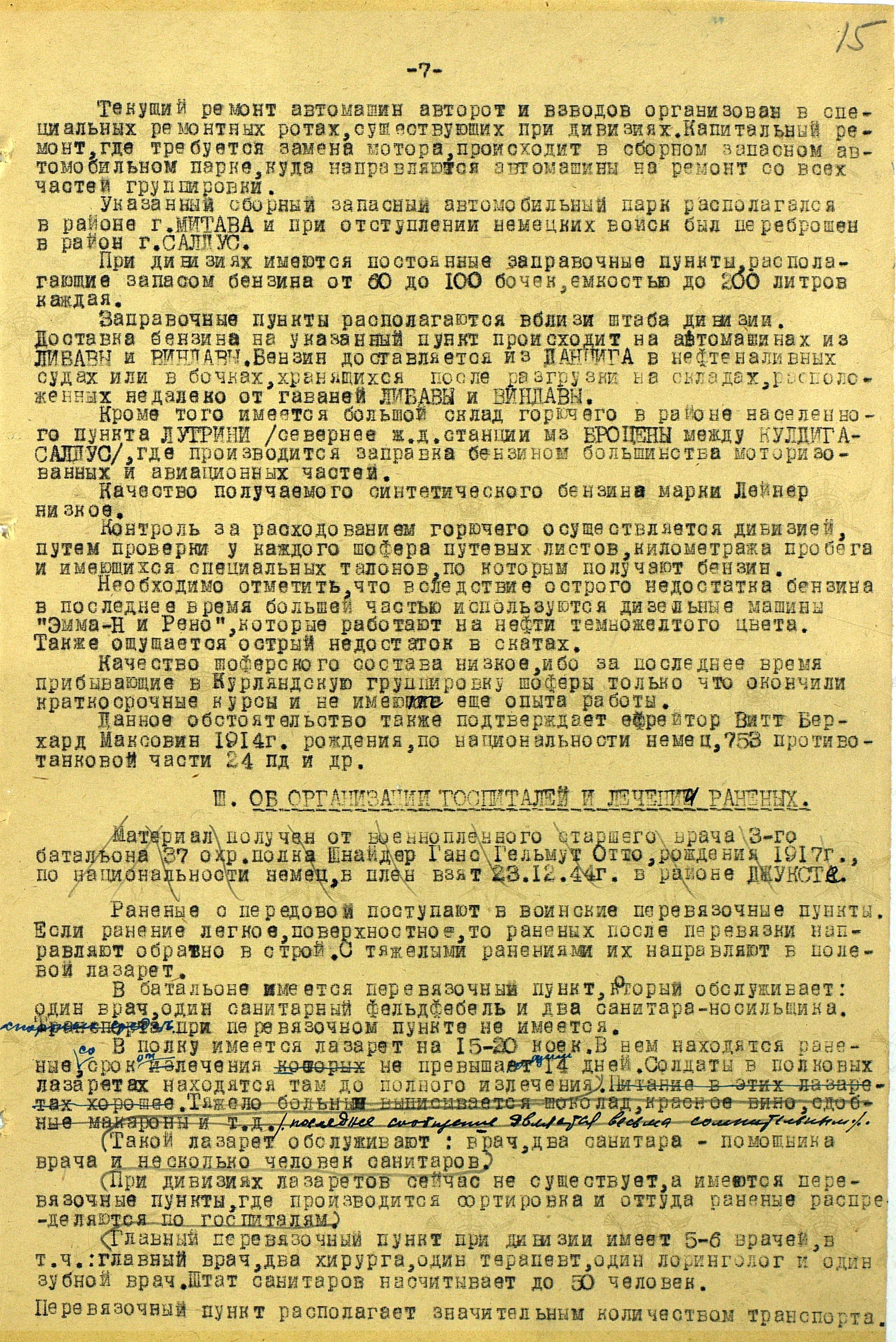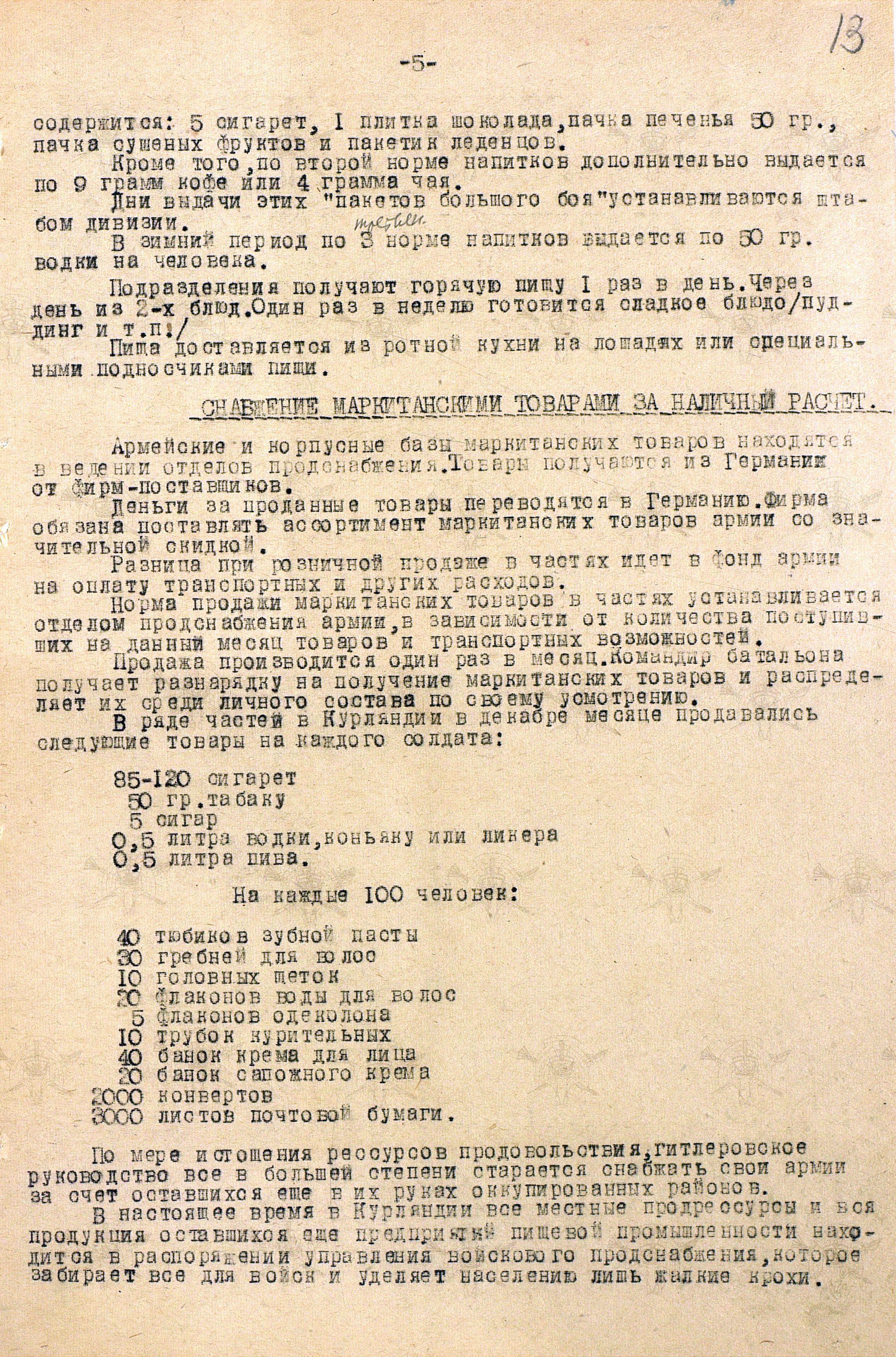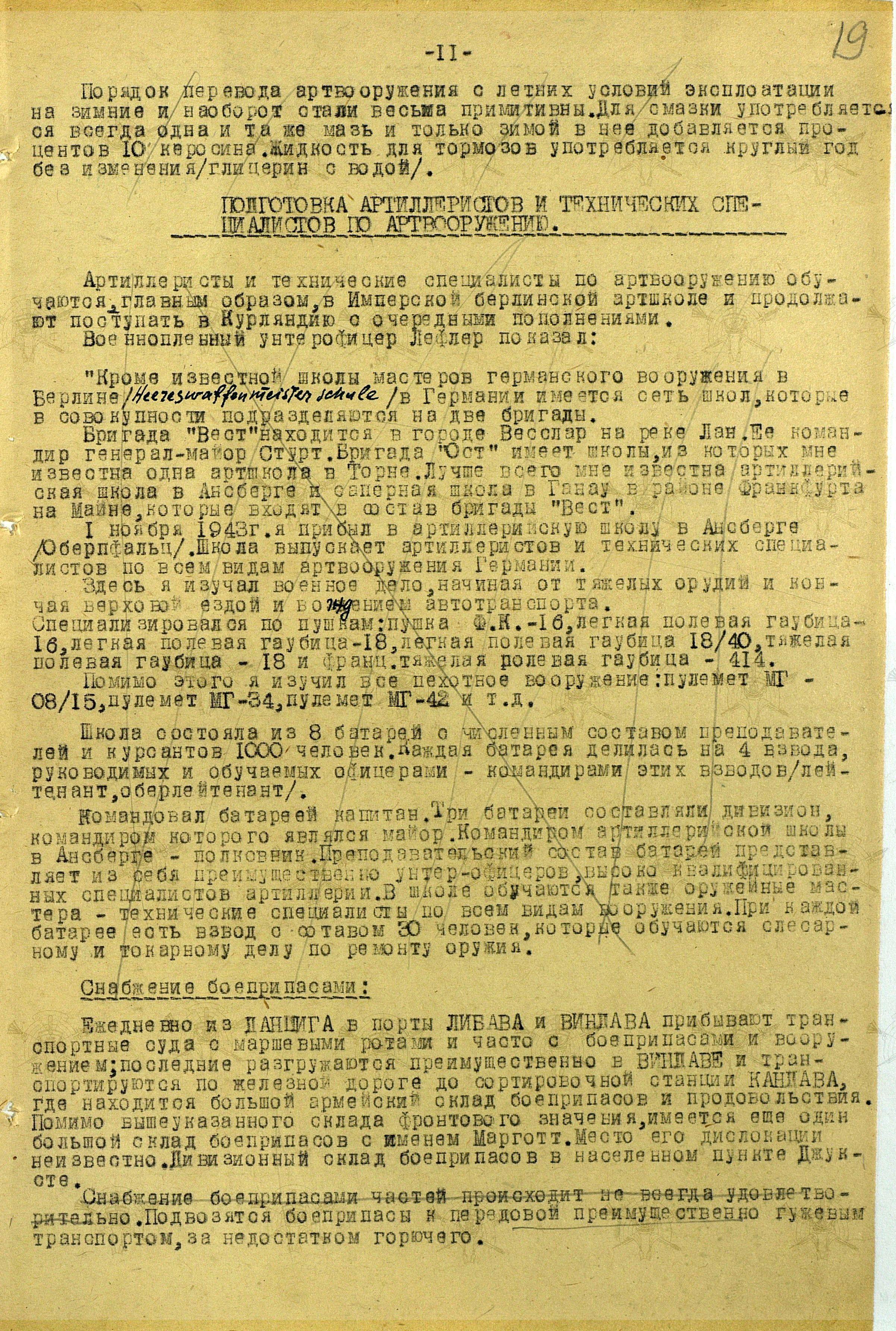 Сегодня вашему вниманию представляются два документа по организации тылового обеспечения германской армии, составленных на основании показаний немцев, попавших в плен в Курляндии.