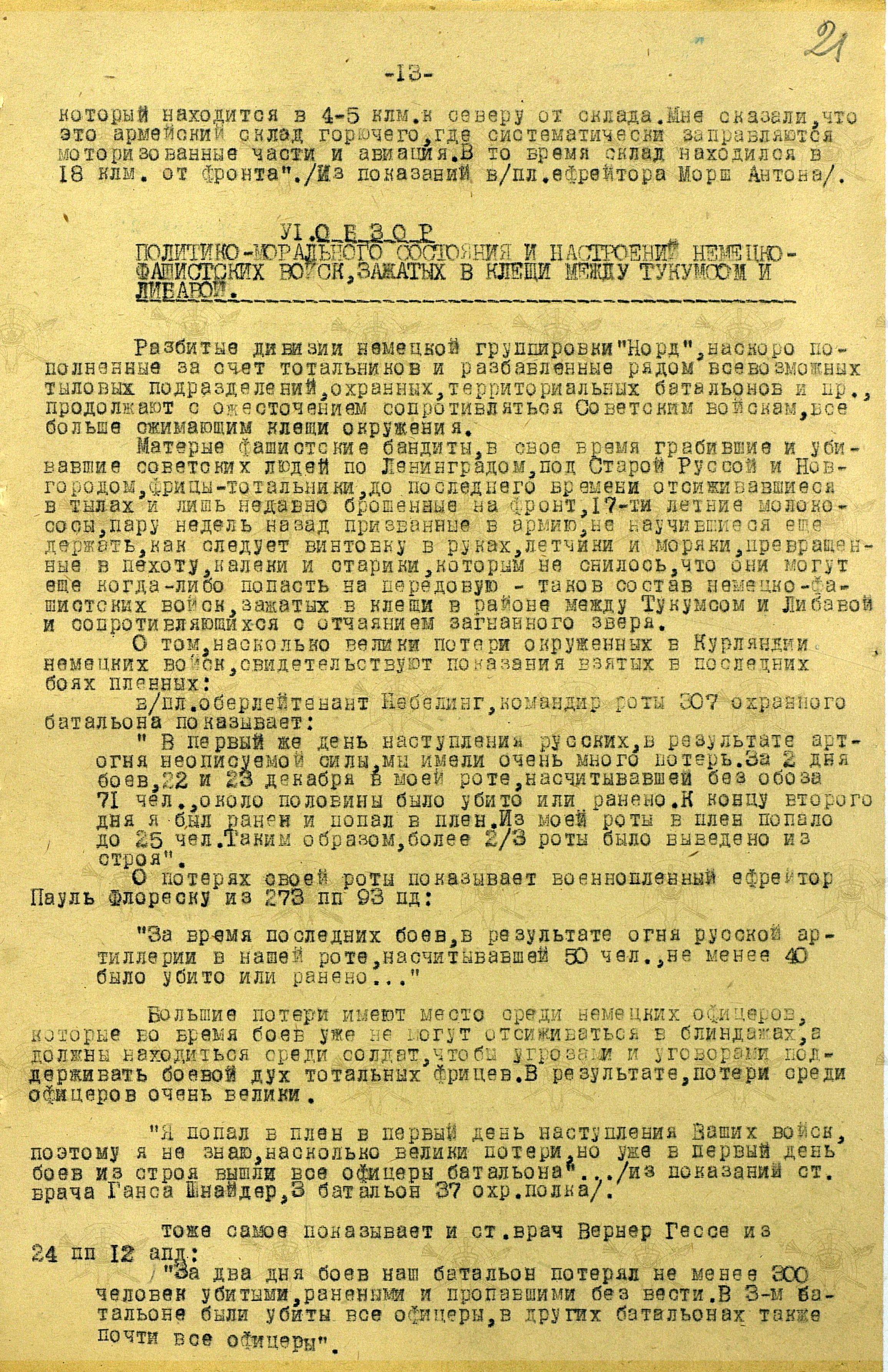 6. Обзор политико-морального состояния и настроений немецко-фашистских войск, зажатых в клещи между Тукумом и Либавой.
