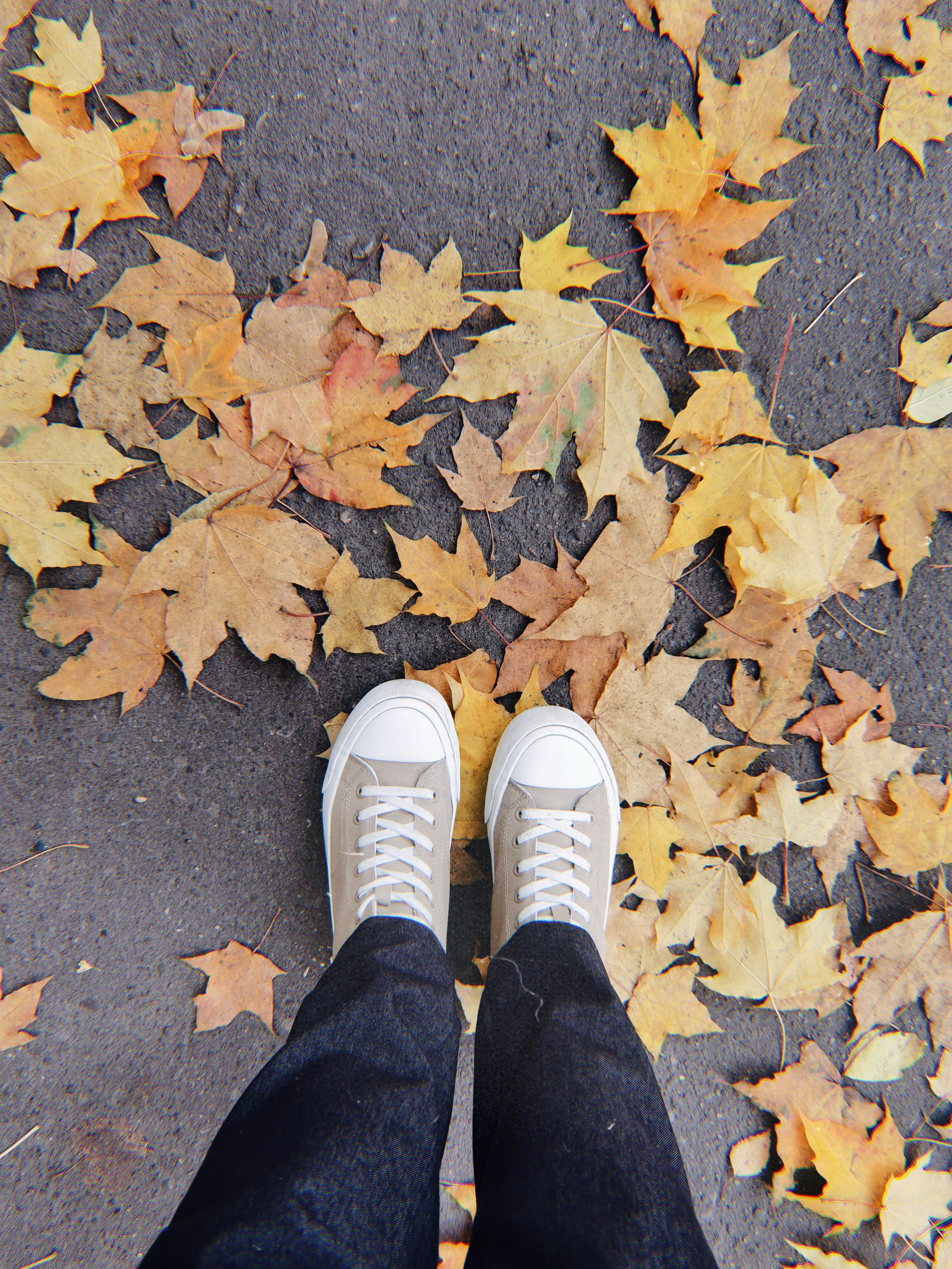 Люблю наслаждаться красотой природы и не могу удержаться, чтобы не сфоткать ноги в осенней листве. Ну какое же это крутое сочетание — холодная серость асфальта и яркость осенних листков!