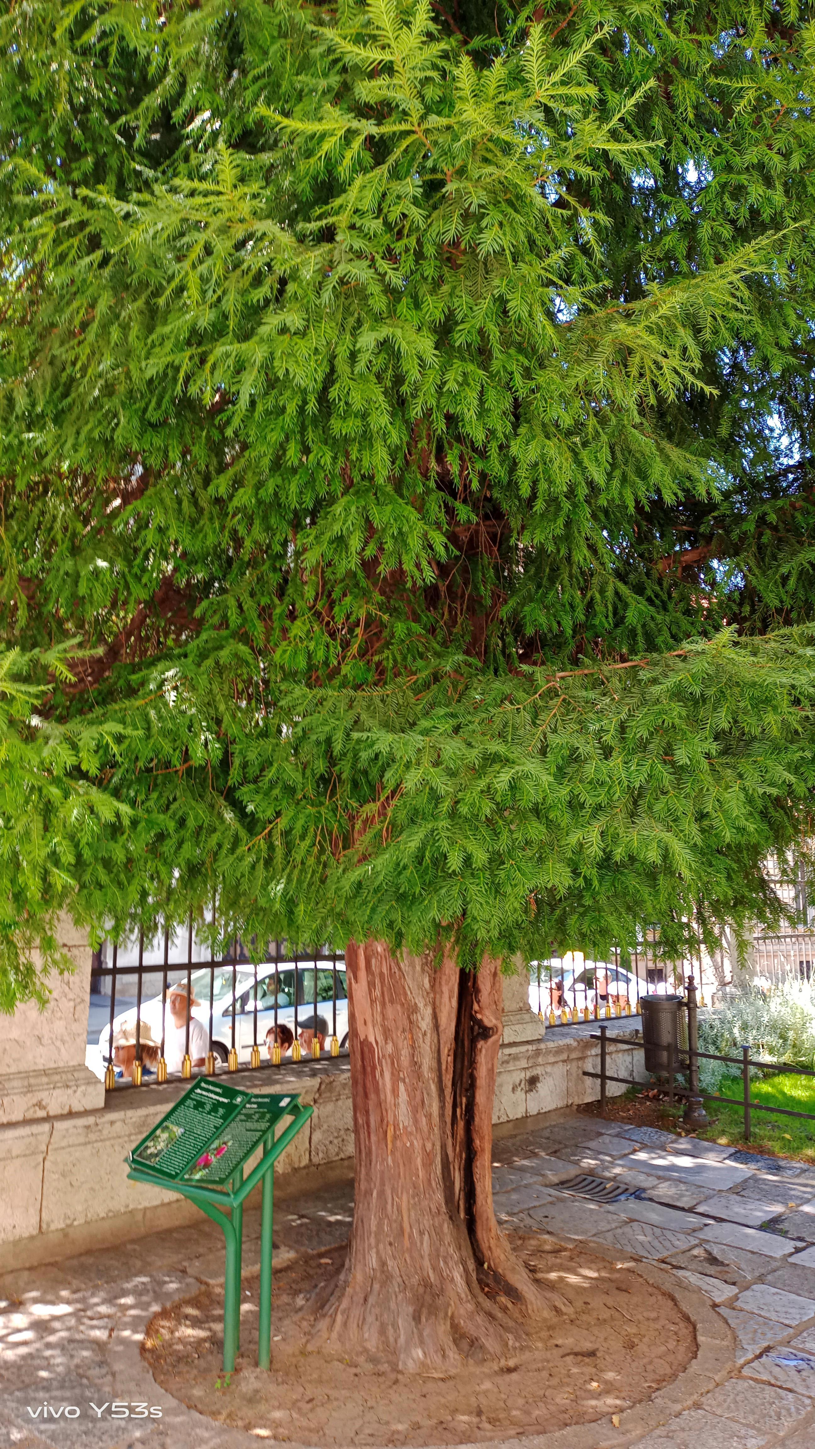 По бокам от входа в собор растут два тиса (или как правильно — две тисы? вобщем, два тисовых дерева). На фото — деревья как деревья, ничего в них, вроде, нет особенного. Но почему-то под ними необычайно приятно сидеть. От них идёт густой мягкий аромат и какая-то энергия, что ли, которой заряжаешься, как аккумулятор. Никогда нигде такого ощущения от простого сидения под деревом я не испытывал, и у жены те же впечатления.