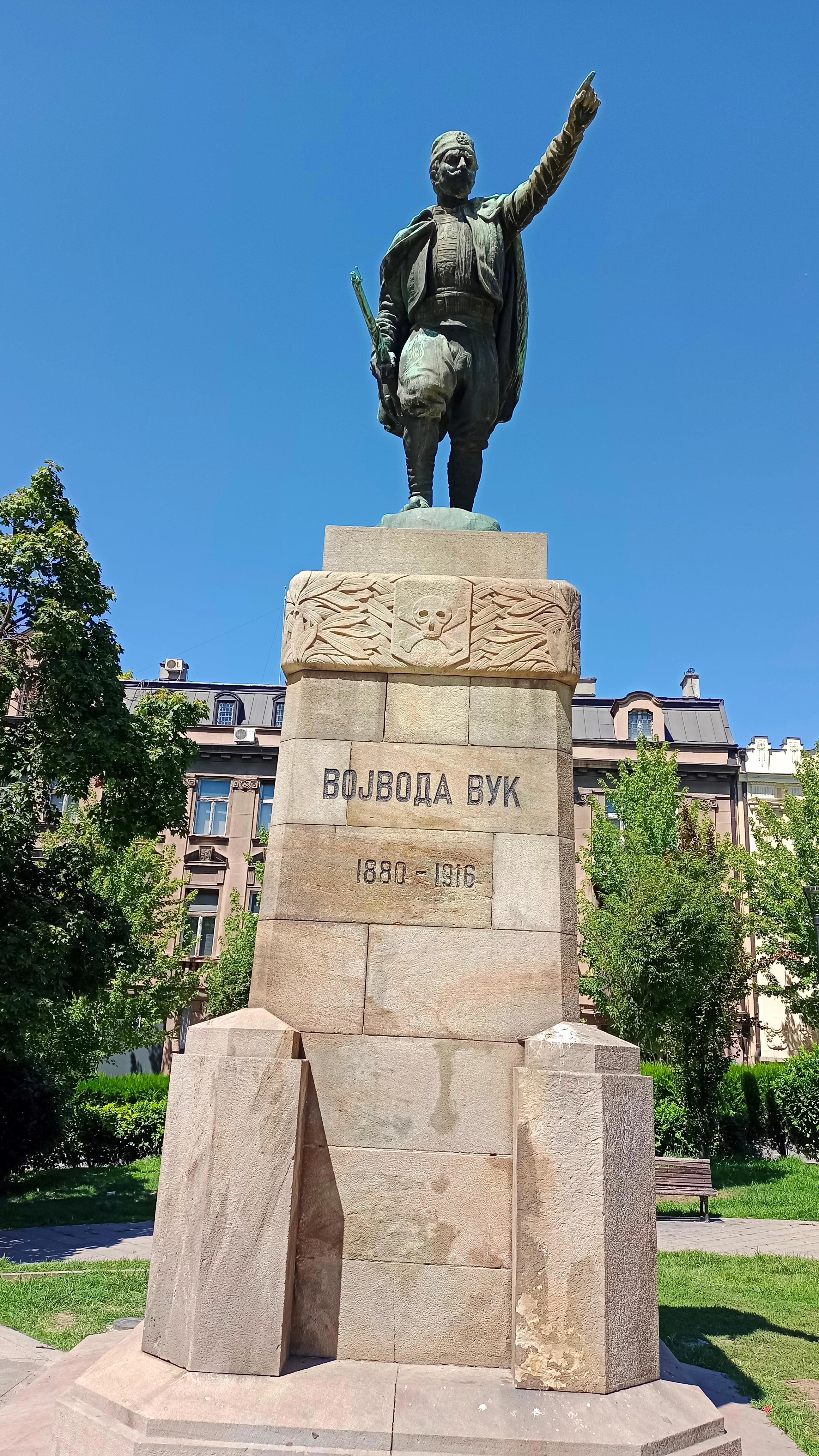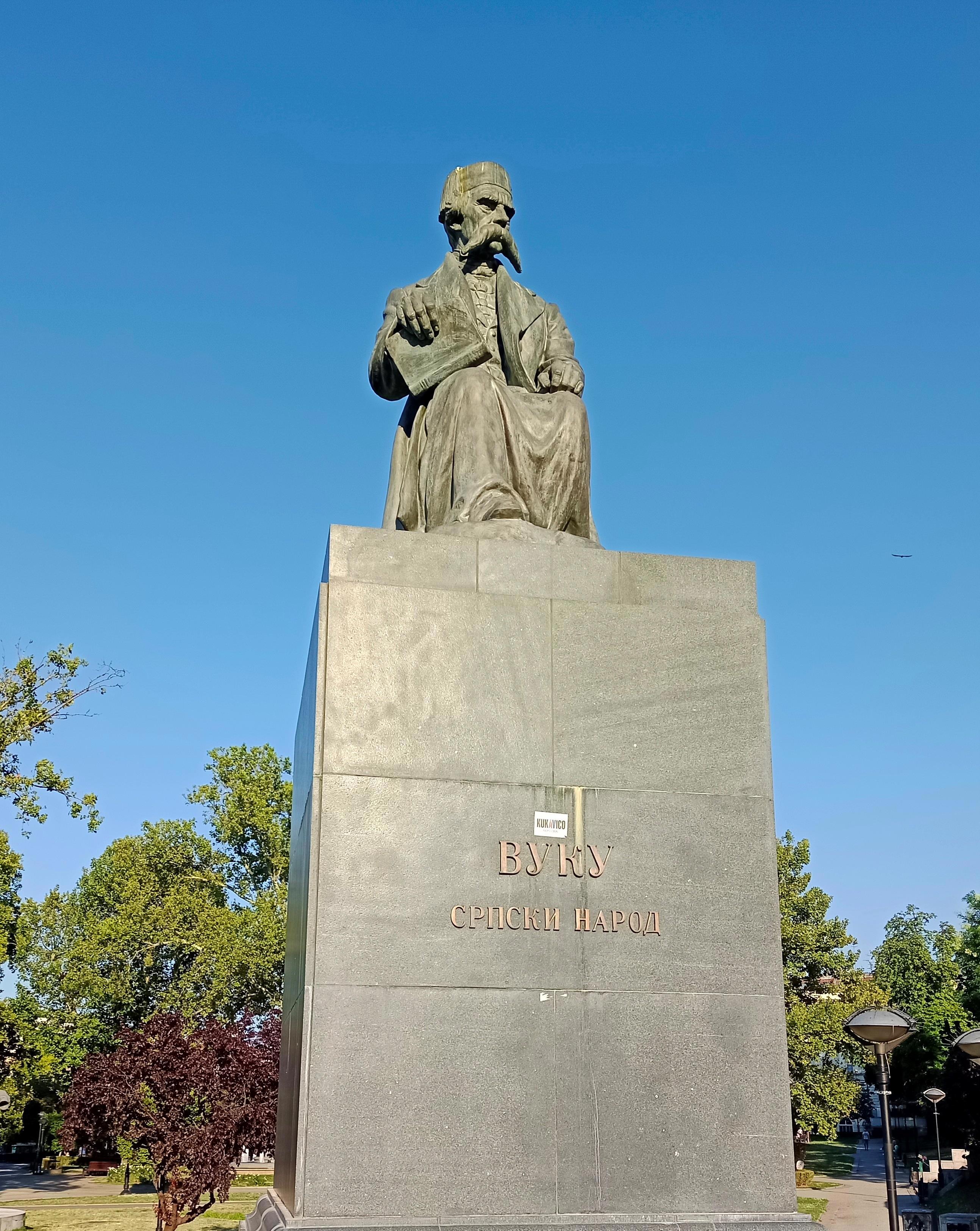 Так что вот ещё один памятник — и тоже Вуку. Только не воеводе, а историку и лингвисту, языковому реформатору Вуку Стефановичу Караджичу (1787-1864).