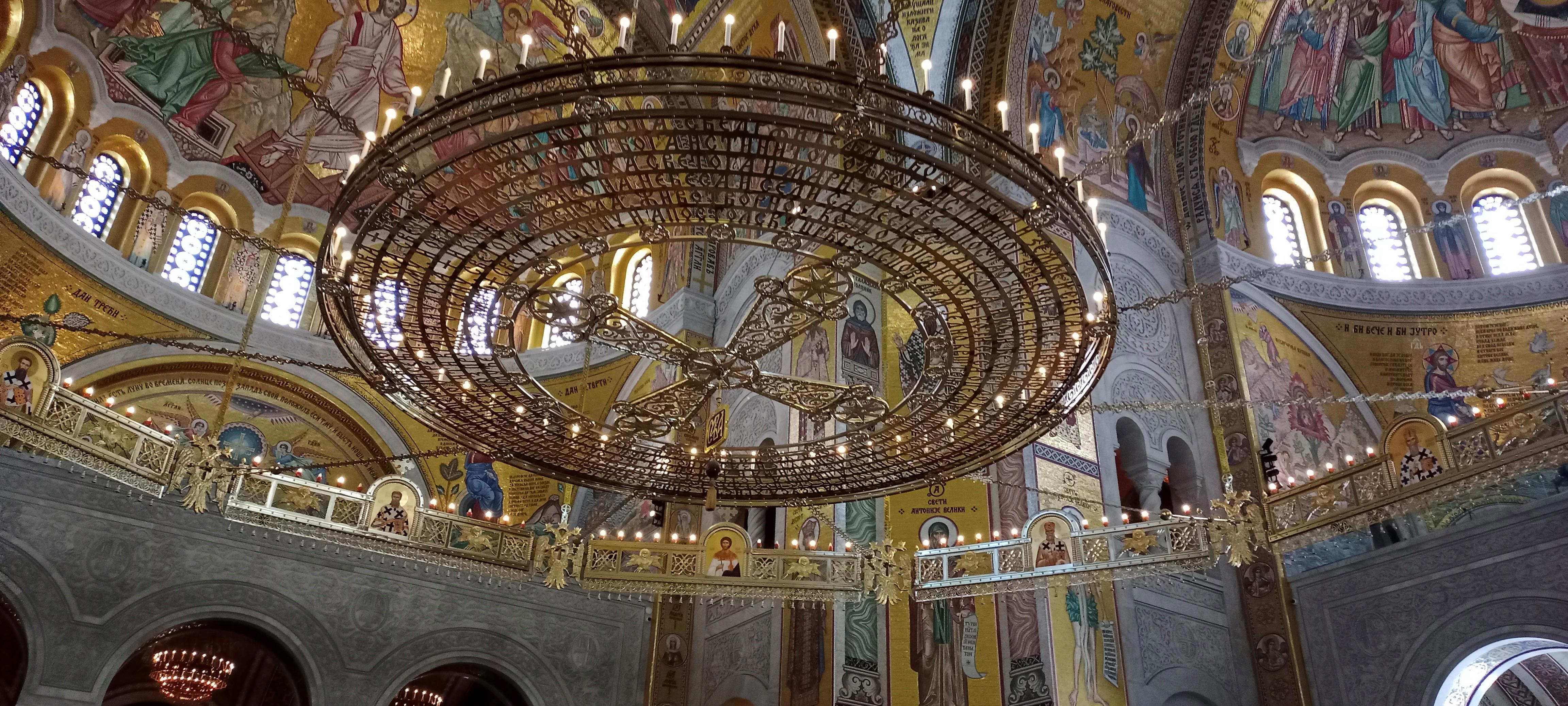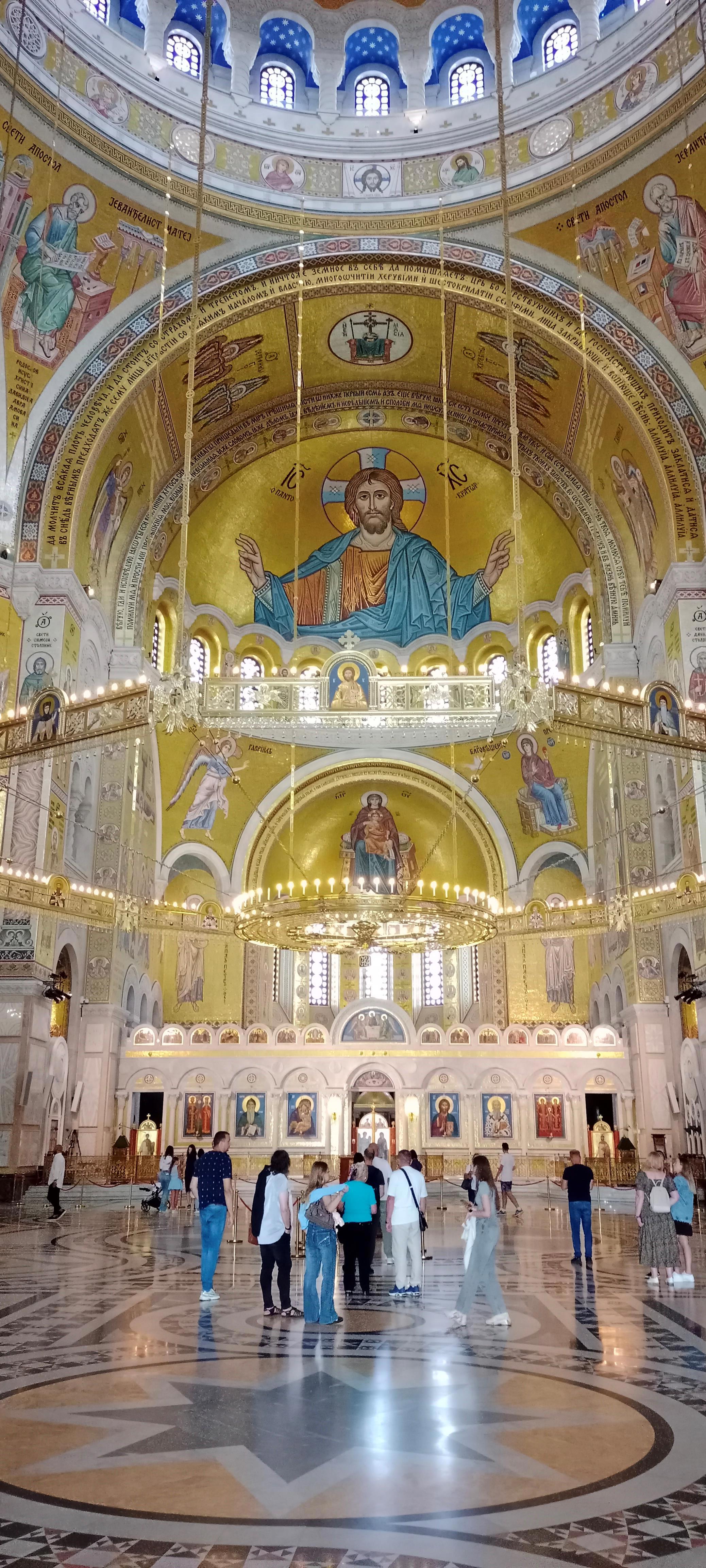 В путеводителях пишут, что храм святого Саввы — это точная копия Святой Софии в Константинополе. Нет, это не один к одному, кое чем отличается. И, понятно, фрески там есть уже с сербскими святыми.
