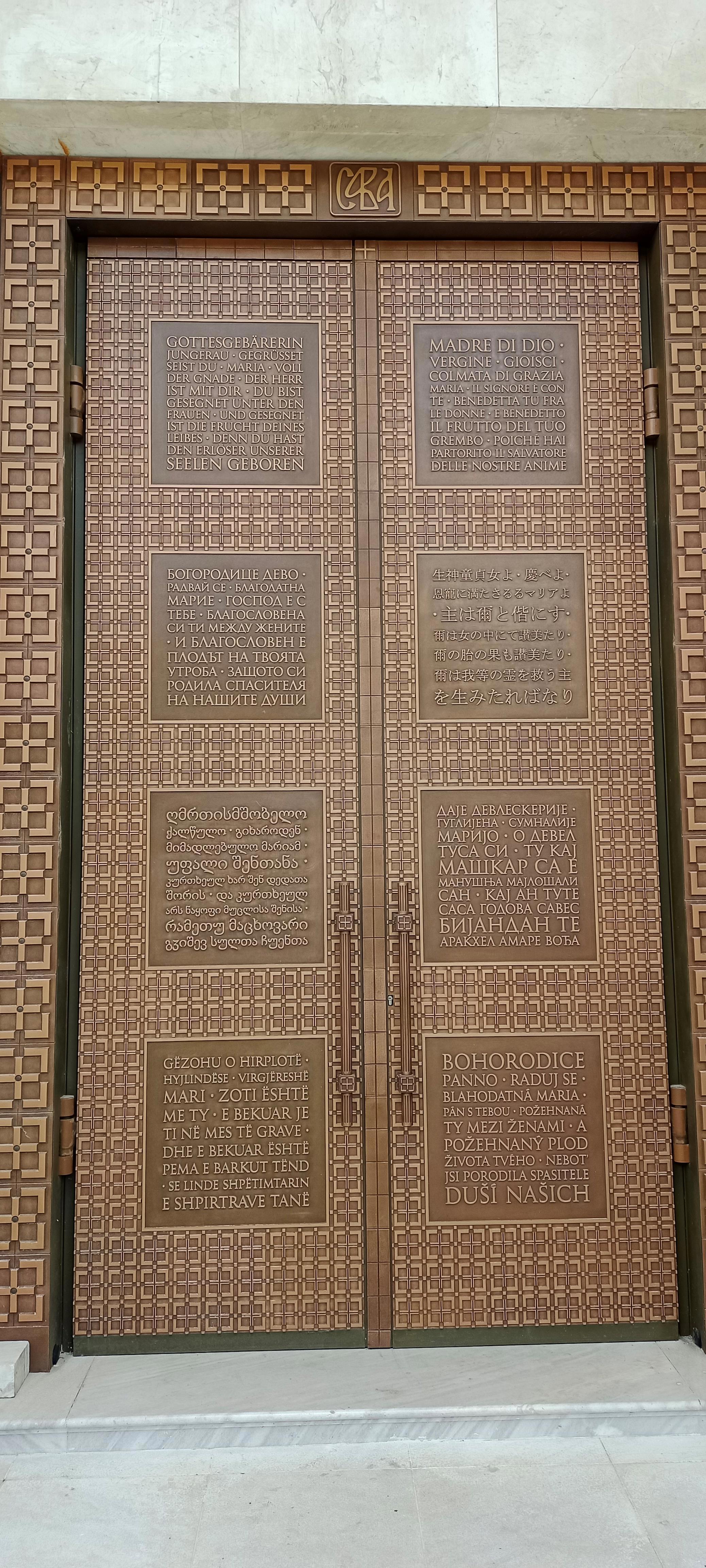 На дверях храма - молитва "Богородице, Дево..." в общей сложности 24 языках.