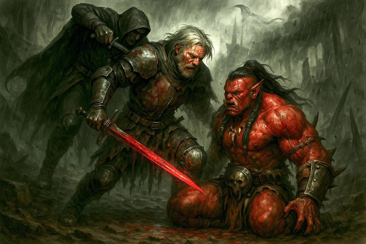Тобиас сам уходит вместе с вождем, оставляя добить остальных другим оркам.