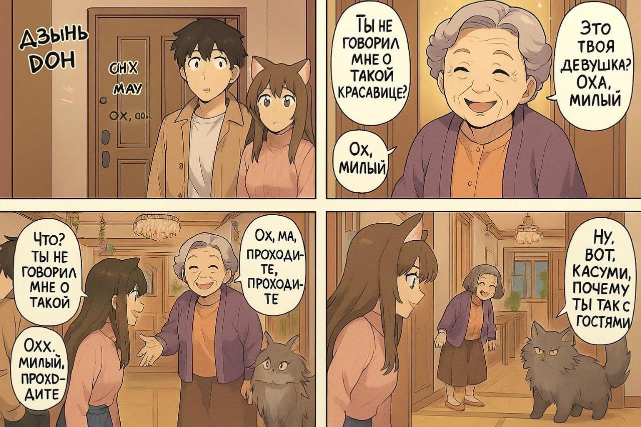 — Ну, Касуми. За что ты так к нашим гостям? — по-доброму приструнила её Вакана-сан. Кошка деланно отвернулась и махнула хвостом, так и говоря: мы ещё не закончили.