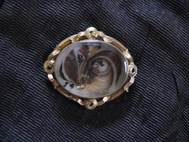 Из коротких прядей делали завитки, локоны, красиво располагали под стеклом или ювелирным камнем. Иногда из волос делали целые панно, небольшие сценки траурного содержания.