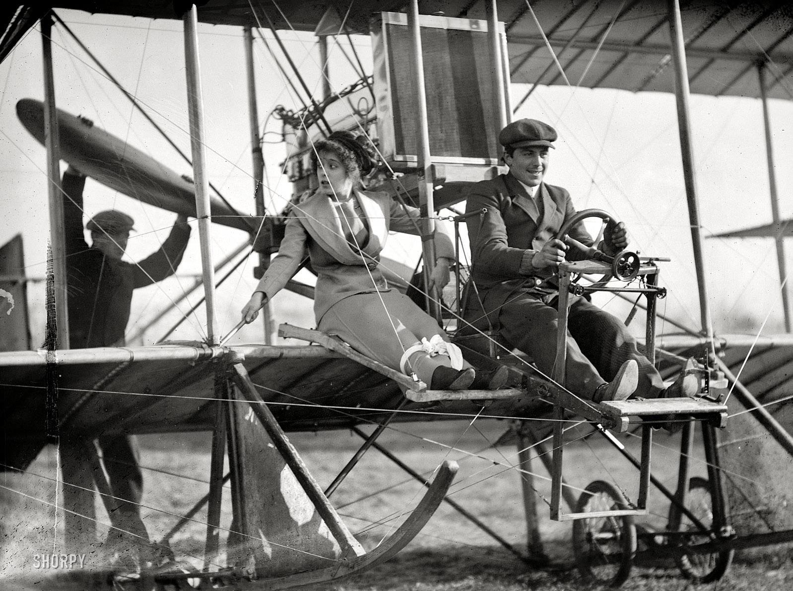 Автор: Олег РикоСмотрю я на фотографию начала прошлого века и восхищаюсь тем, как барышня выглядит. Хоть прямо сейчас на бал или светский раут. А когда подумаешь, на какой этажерке из жердочек они сейчас полетят в небо, вообще становится страшно. Здорово, что остались такие фотографии.