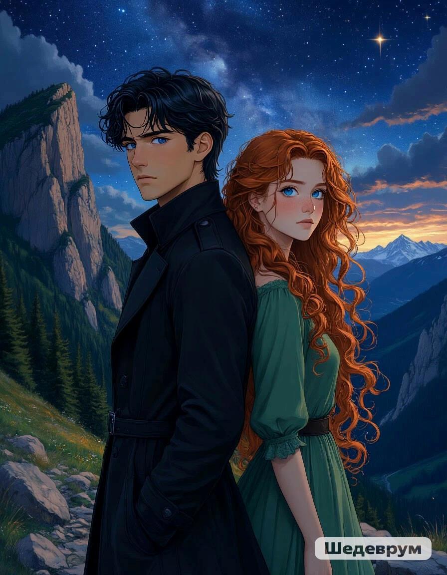 А вот и наши главные герои на фоне гор Исира – места, в котором встретились Нинель с Миреем; места, в котором сошлись ведущие к ним следы и свели сынов Хаоса и дочь Неба, дабы те объединились и сделали эти следы вновь зримыми