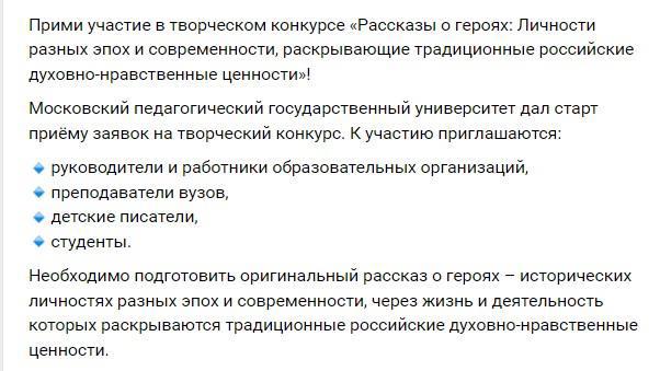О литературном конкурсе, в котором я было хотела поучаствовать, а потом увидела в его условиях... СПИСОК ГЕРОЕВ (!!) и как-то сразу расхотела. Итак, https://mpgu.su/wp-content/uploads/2025/09/Положение_о_творческом_конкурсе_29_09_2025.редакция_1.pdf