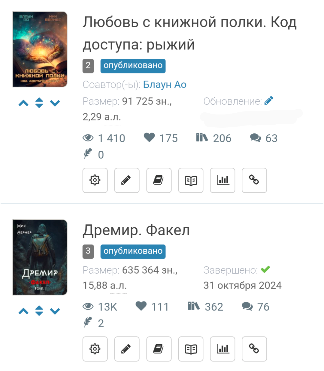 По количеству покорённых сердец читателей повесть за пару недель обогнала мой самый успешный том романа в полтора раза, а по библиотекам догоняет. На роман я эту статистику уже год собираю...