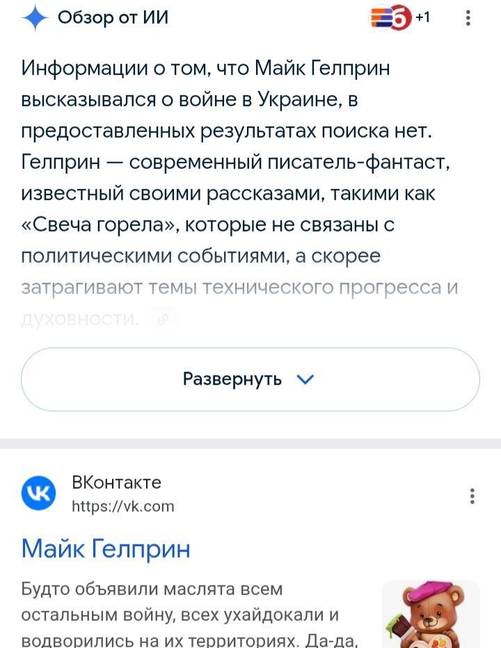 Честно, автор, уже после написания книжки, когда она пошла гулять по библиотекам всея Руси... - обеспокоился... а вдруг Майки таки трусливо не молчит... клевета ведь будет! И задним числом спросил у мистера Гугля насчет разных гельпринских мнений по животрепещущим мировым вопросам. Оказалось, что мистер Гугль солидарен с Ангеловым. Фуух.