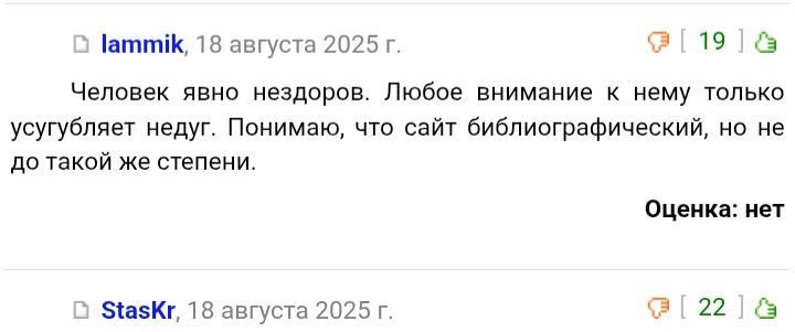 Также в оценках отметились ещё парочка героев книги. Эпизодических. Примечателен один, а именно друг владельца ФЛ и его питерский номинал по ныне закрытой ООО-шке. И один из модеров форума Фантлаба, по совместительству. Спасибо, что прочитал, как там тебя...
