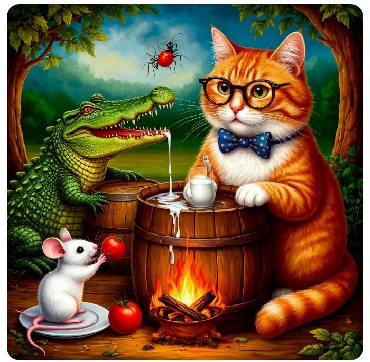 Несколько котов и кошек задали вопросы, на которые Изабелла ответила не задумываясь. Даже на такой хитрый вопрос, откуда берутся мыши Изабелла снисходительно ответила, что это знают даже люди и ещё в XVII веке исследователь Ван-Гельмонт доказал, что если вы набьете глиняный кувшин грязным нижним бельем, добавив туда некоторое количество пшеницы и сыра, то приблизительно через двадцать один день пшеница превращается в мышь. Причём эту идею кожанный "мудрец" украл у своего кота Клауса.