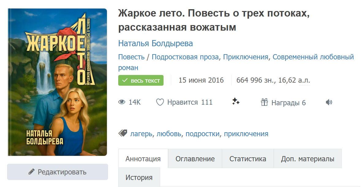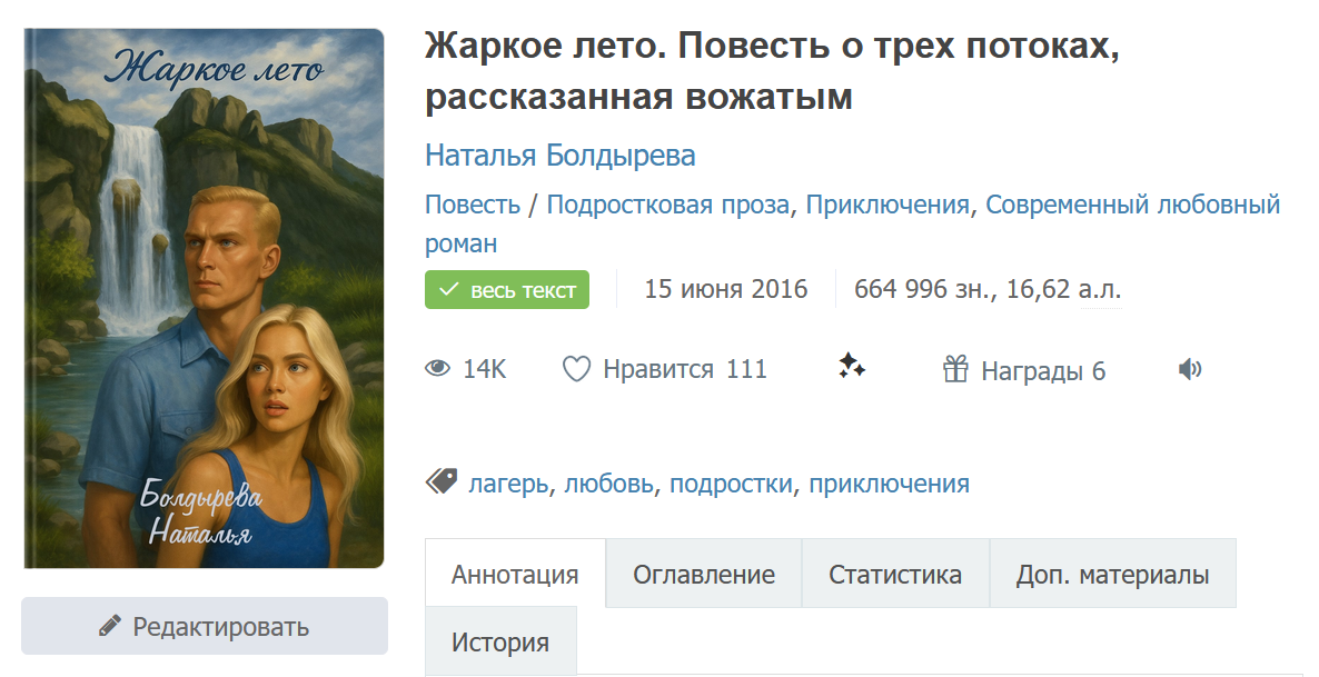 Автор: Наталья БолдыреваНекоторое время назад Екатерина у себя в блоге запустила акцию "Логотип на обложку", и я попытала счастья со своим "Жарким летом". У меня уже была симпатичная картинка, сгенерированная ИИ на основе моего рисунка, а логотипы, представленные в блоге Екатерины, выглядели очень стильно. Я, конечно, ожидала, что обложка, на которой название и имя автора выполнены профессиональным дизайнером, будет выглядеть лучше, но, честно скажу, я не ждала какого-то "вау" эффекта. ...но именно он и случился.