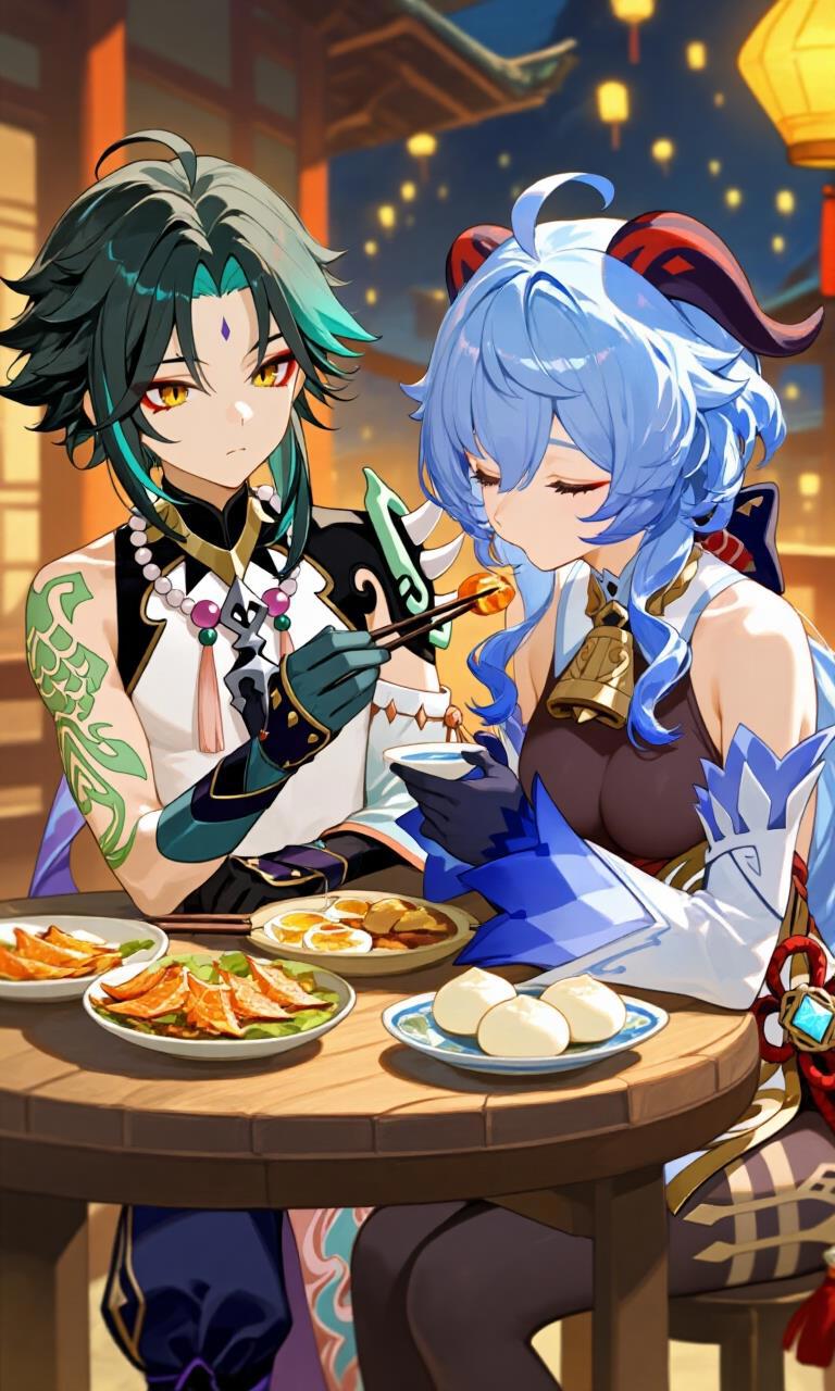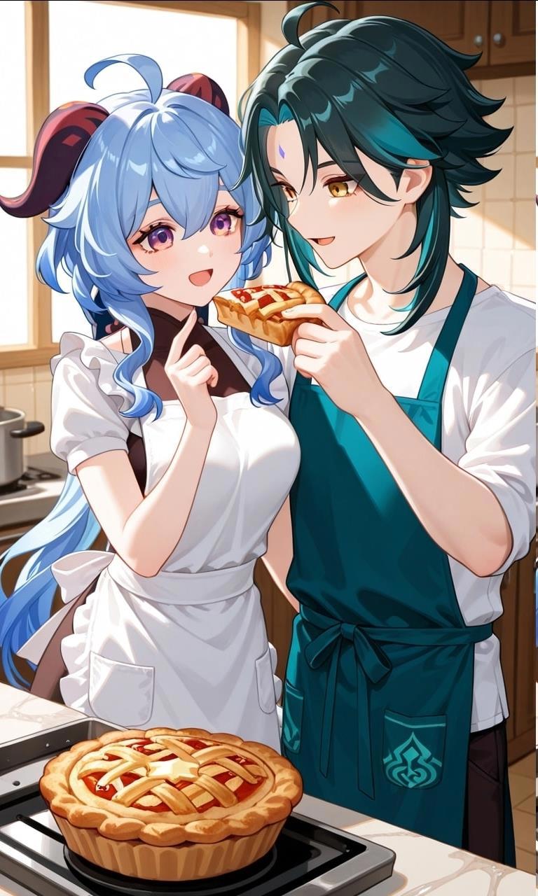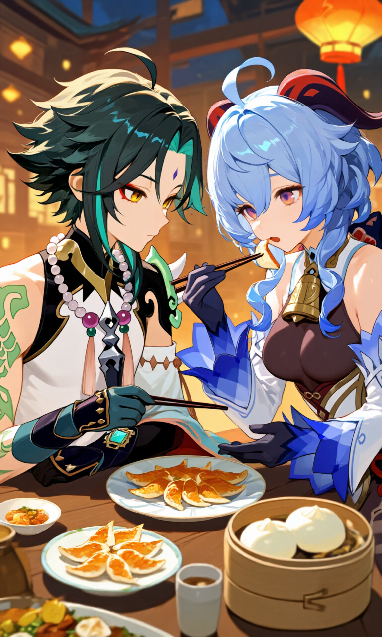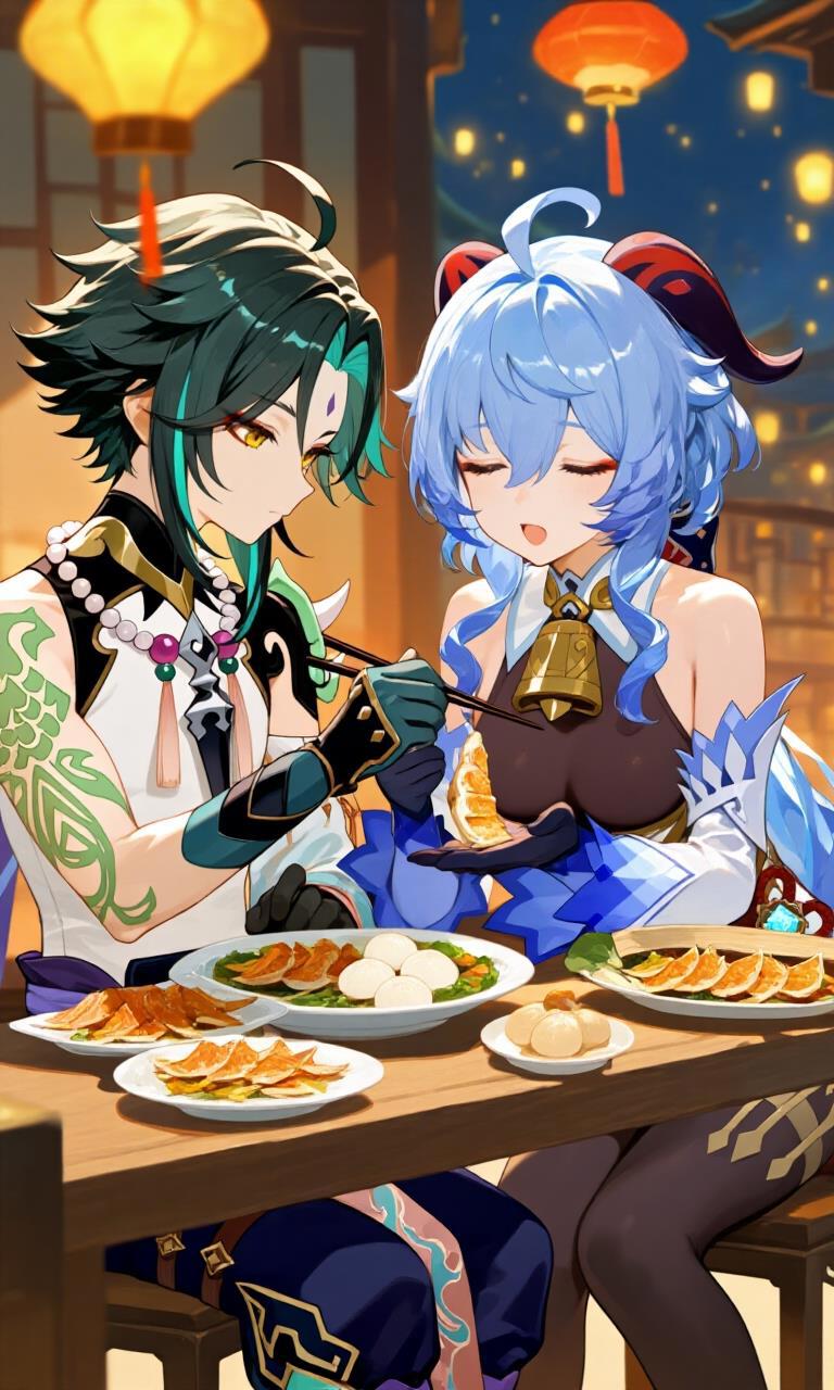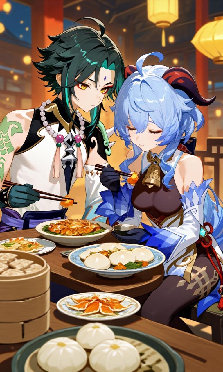 "Эти пирожки... они идеально сбалансированы. Хрустящая корочка, мягкая начинка, и эта сладость закатника, которая не перебивает, а дополняет. Сяо, ты учел энергетическую ценность? Я беспокоюсь о том, чтобы не нарушить свой строгий режим питания, но... еще один, пожалуйста. Ради изучения кулинарной традиции, разумеется."
