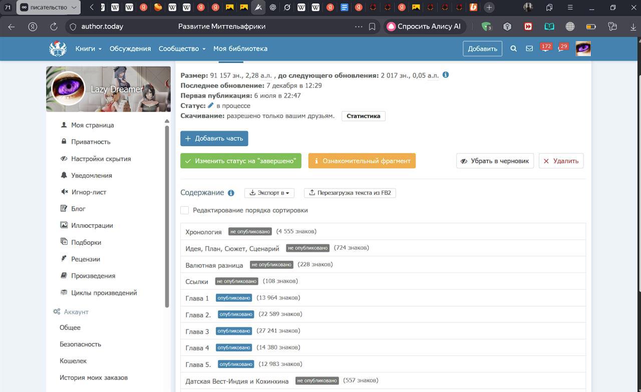 Медленный выход глав и темп писательства получается из... Из-за того моего разгильдяйства(?). Ну, из-за того что в школьные годы я слишком привык к тому что я могу на месте с импровизировать. Слишком большой акцент на импровизации и пренебрежение долгосрочным планированием сыграло со мной злую шутку. Только сейчас, оглядываясь на своё прошлое понимаю какую ошибку я совершил. У меня не было четких целей, нету конкретных планов, лишь смутные желания и влажные фантазии.