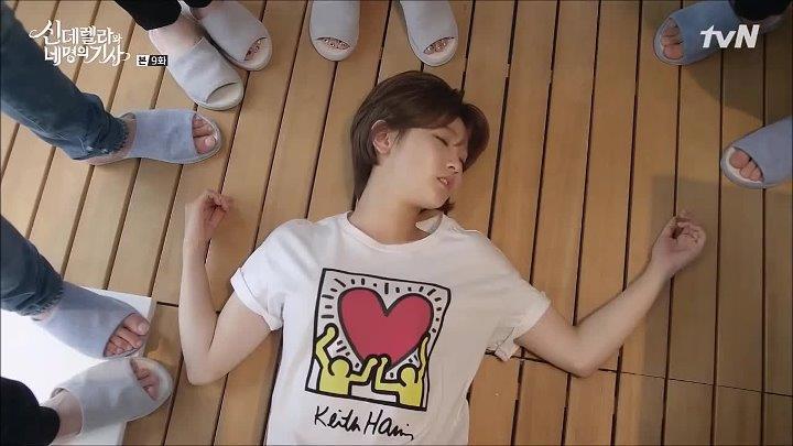 Выплюнуть холодную воду на тапки Джи Хен. Вскочить! Открыть глаза! Закрыть глаза...