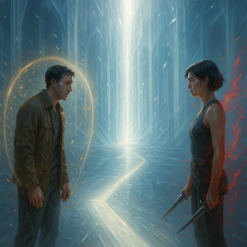 Сегодня еще один эмоциональный, но не слишком точный арт - сцена расставания Андрея и Лиры. И все бы ничего, мне очень нравится как получились оба персонажа, вот только кожа у Лиры должна быть нефритовая. А если вы еще не дочитали до этого момента - бегом за книгу Две грани. Лабиринт! https://author.today/work/476110