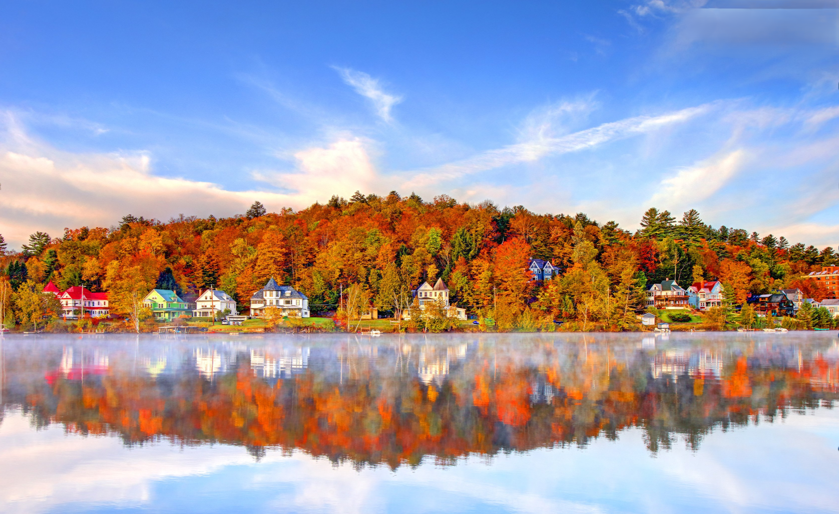 Озеро Саранак в горах Адирондак в штате Нью-Йорк, США
