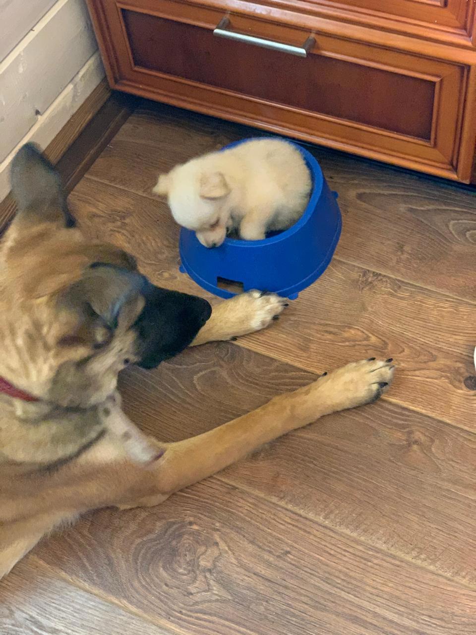 Сегодня попалась парочка фоток: было и стало. Это как раз большая рыжая и маленький белый. Кстати: мелкий на самом деле – лютый зверь, у него папаша – ягдтерьер (порода имеет репутацию прирожденного киллера), мамаша – что-то вроде лабрадора. Получил внешность матери и характер отца.
