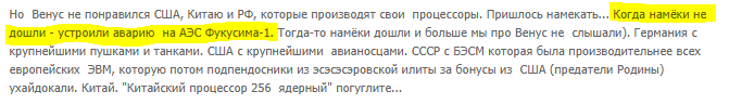 Хер бы с ним с процессором венус, про который разоряется конспиролух, на базе которого японцы в 2011 спаяли суперкомпьютер на 10 петафлопс, кто про него слышал (табличка сарказм). Почему потом об этом процессоре не особо слышно? Да потому, что Фуджицу начали делать его усовершенствованную версию, а потом и вовсе поменяли архитектуру - топовые процессоры стареют не просто быстро, а очень быстро.