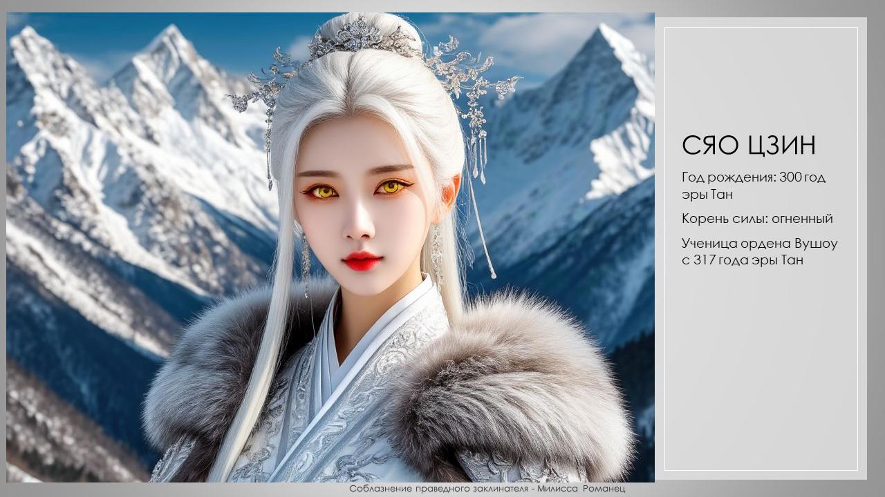 Автор: Милисса РоманецОчень люблю делать карточки главных героев, поэтому и к своей новой истории «Соблазнение праведного заклинателя» кое-что приготовила. Представляю вашему вниманию главную героиню: