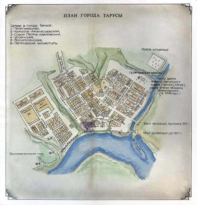 В 4 главе действие переместилось в Тарусу, и задержится там на немалое количество глав. В связи с этим пора пояснить, что описываемая Таруса с современным прекрасным городом имеет не слишком много общего. Прежде всего потому, что земская Таруса на Тверди существенно меньше земного города. Писалась она на основе прилагаемой карты. Мне неизвестны ни ее уважаемый автор, ни какую эпоху она отображает - но в романе Таруса нарисована именно такой.