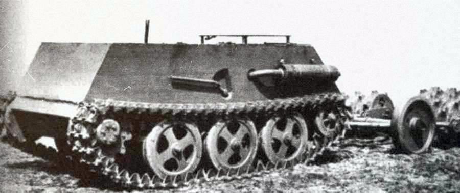 А начиналась эта тема у немцев в 1939 году, как сухопутный тральщик Minenraumwagen SdKfz 300 B-I. Вот этот агрегат:
