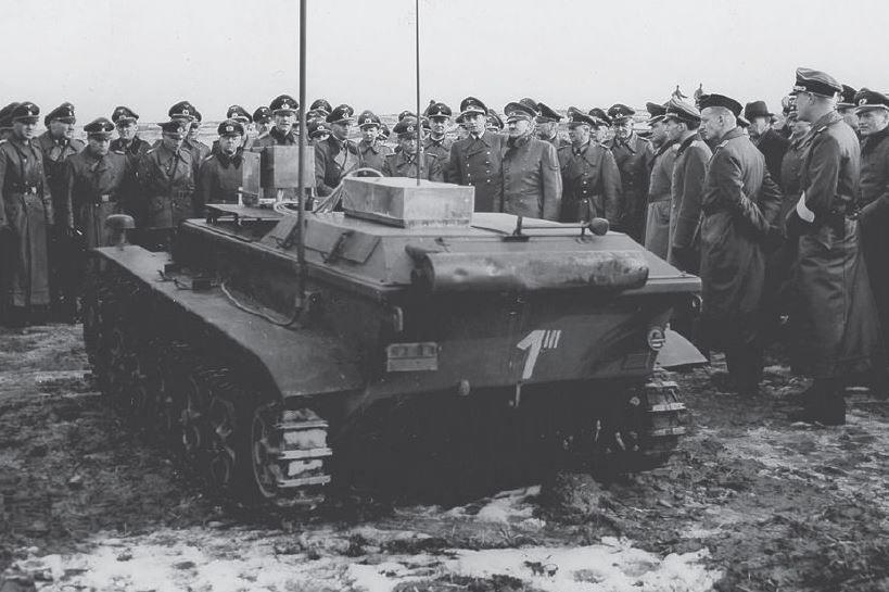 Для действий на суше инженеры Германии также разработали несколько вариантов управляемого оружия. Самая тяжёлая управляемая танкетка весила в разных вариантах от 3,5 до 4,9 тонн и называлась Borgward-IV (SD.KFZ.301) или просто B-IV. Начало было очень хорошим. Этой машинкой всерьёз заинтересовалось самое высокое начальство "Тысячелетнего Рейха":